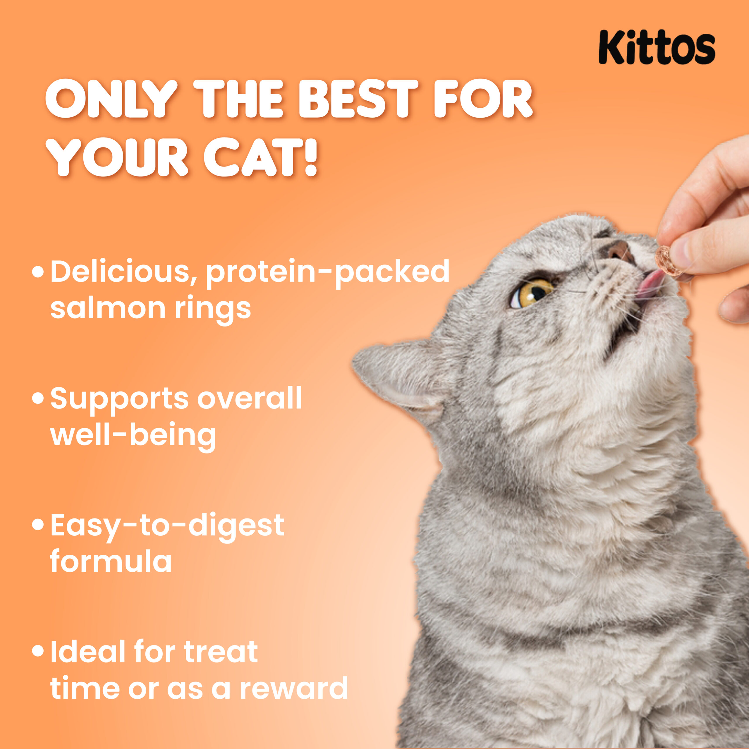 | Ring-shaped cat treats with real salmon. Adds a fun twist to regular feeding time. Perfect for training or independent play. |