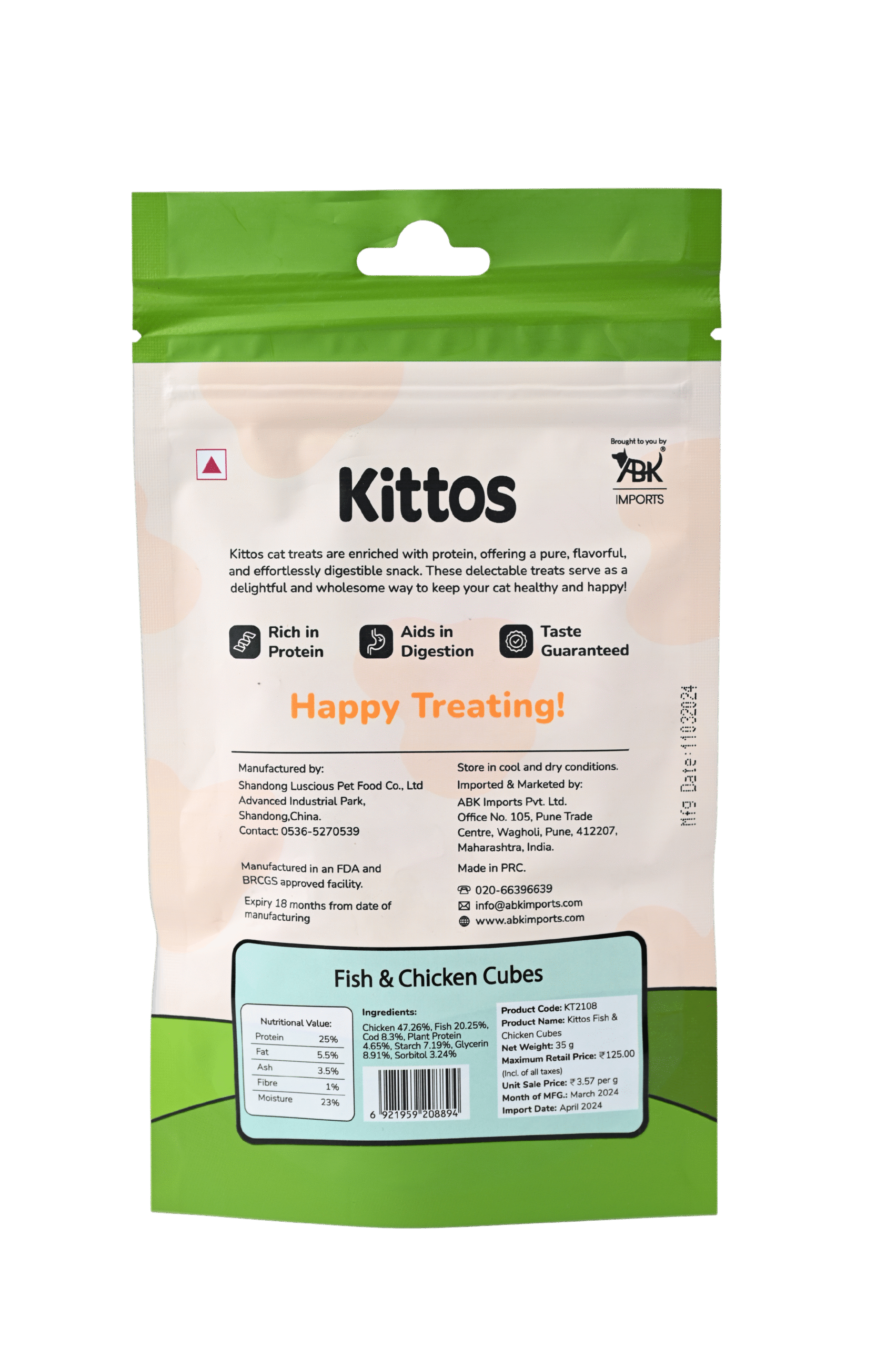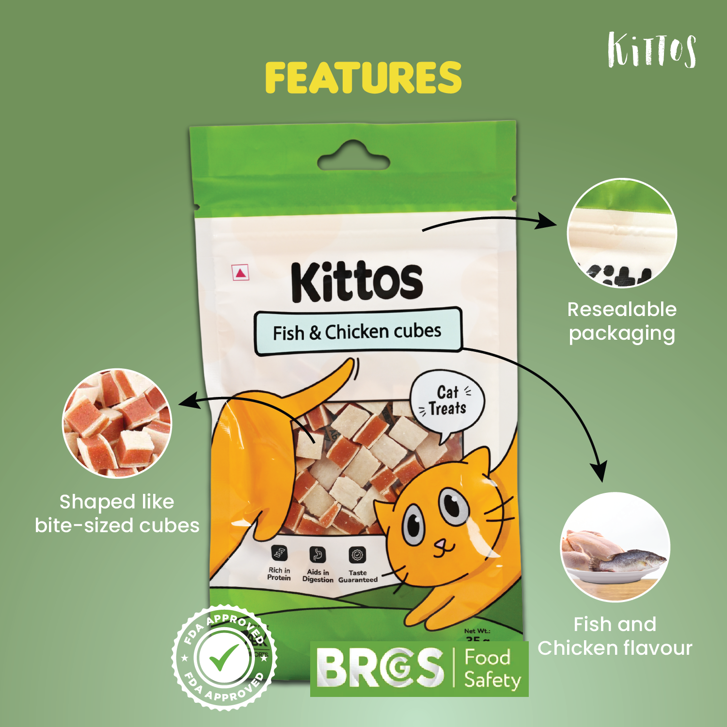 Compact cubes blending chicken and fish. Two-flavor combination for maximum appeal. Ideal for pets who crave variety.