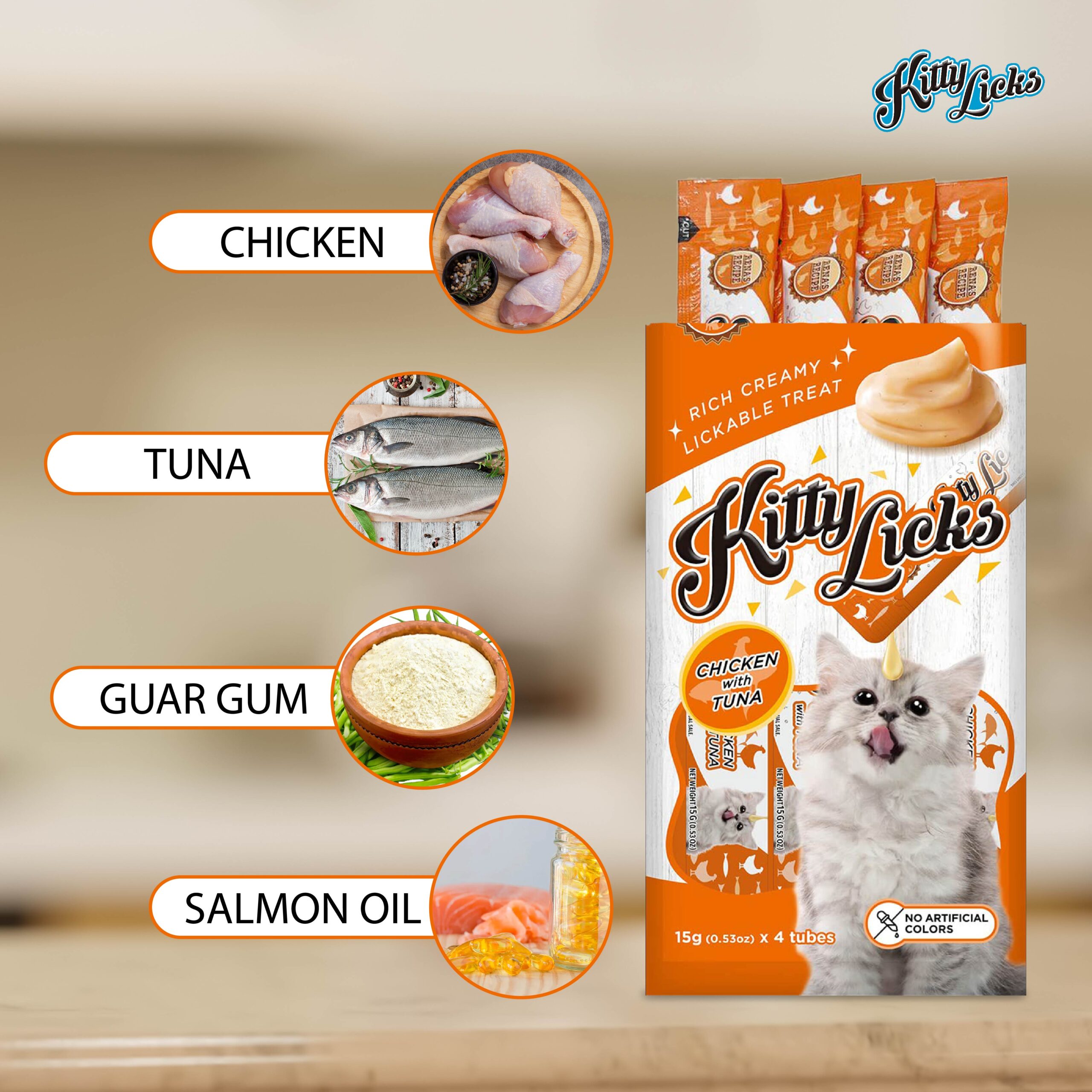 • Kitty Licks Chicken with Tuna Flavor Pack of 4 Tubes