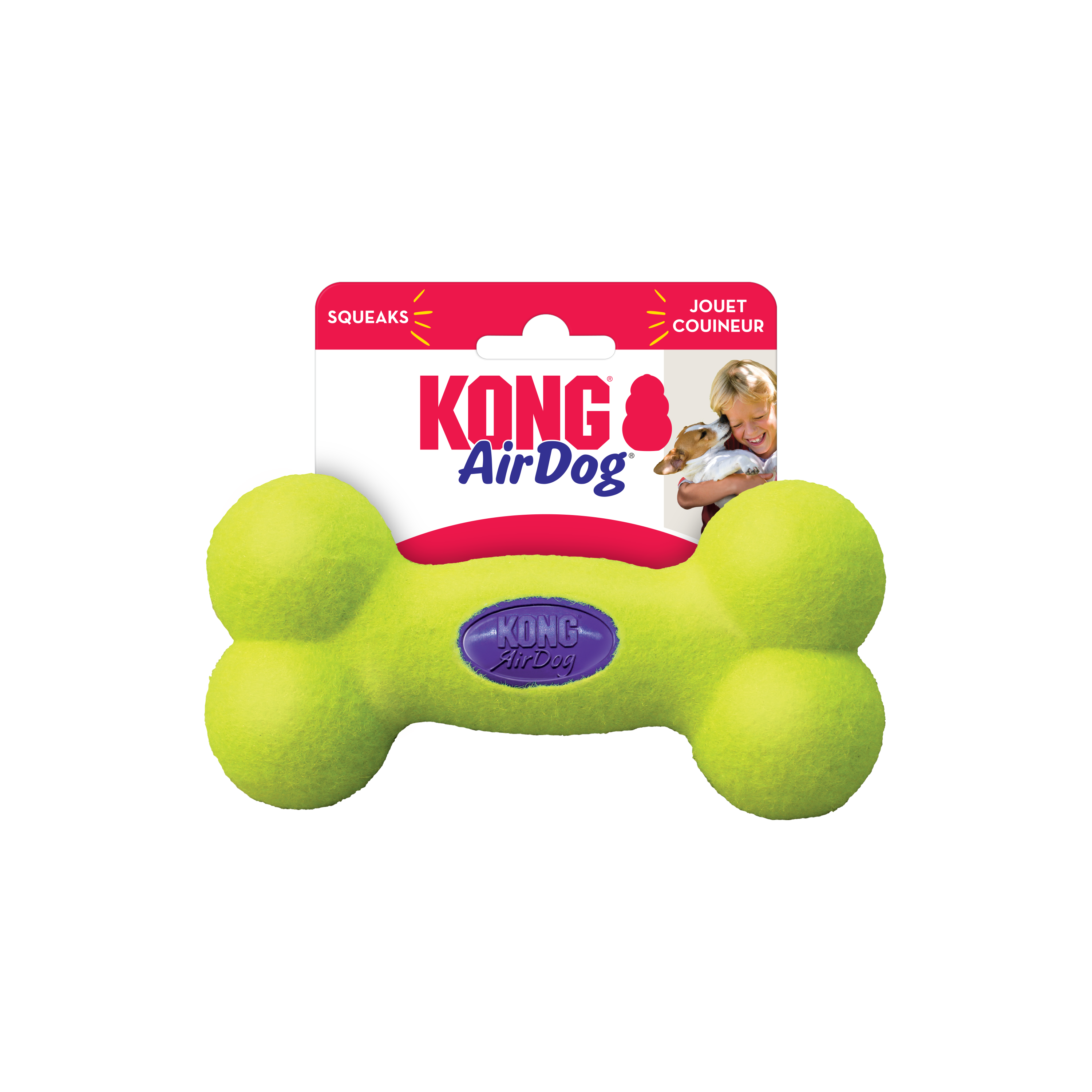 KONG AirDog® Squeaker combines two classic dog toys -the tennis ball and the squeaker – to create the perfect fetch toy. The non-abrasive, high-quality material will not wear down dogs’ teeth. Find your dog’s favorite AirDog® shape and let the games begin.