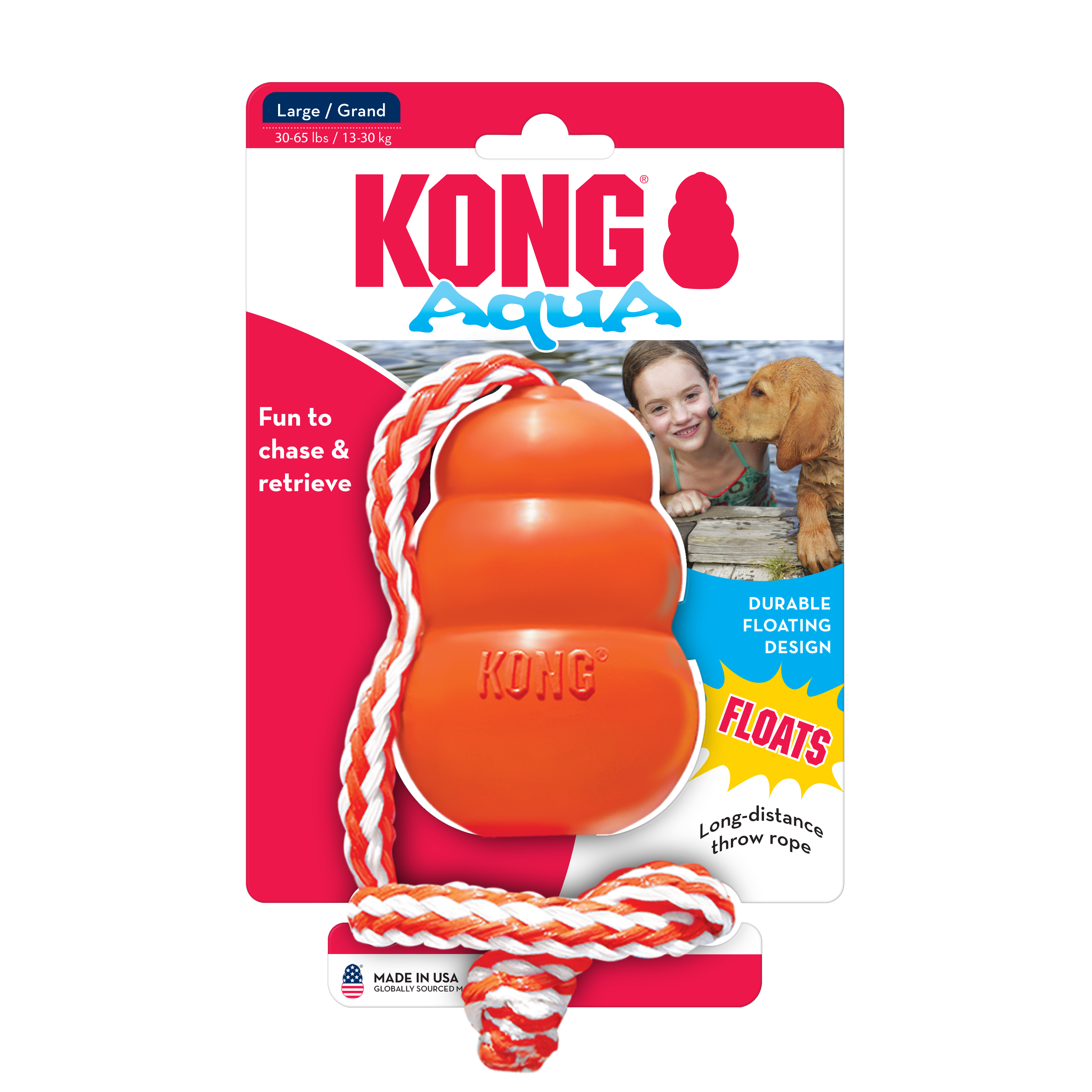| The KONG Aqua is a floating retrieval toy that promotes fun and exercise both in and out of water. The KONG Aqua has a foam core that keeps it floating while your dog swims out to fetch it. |