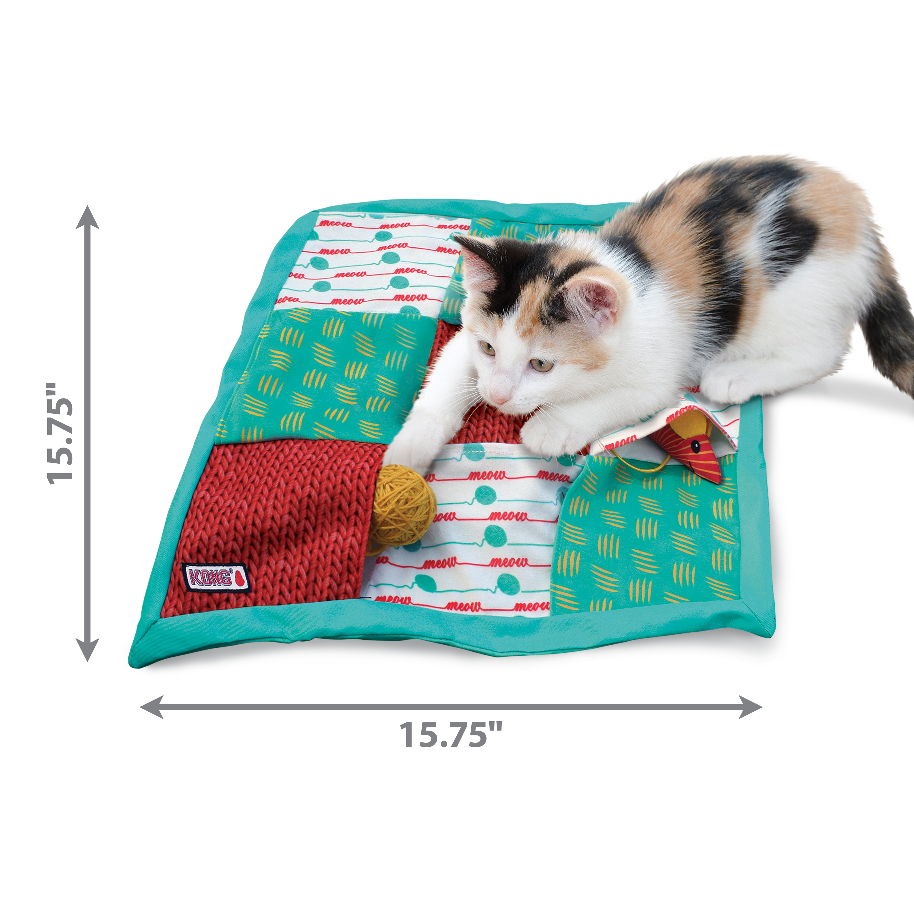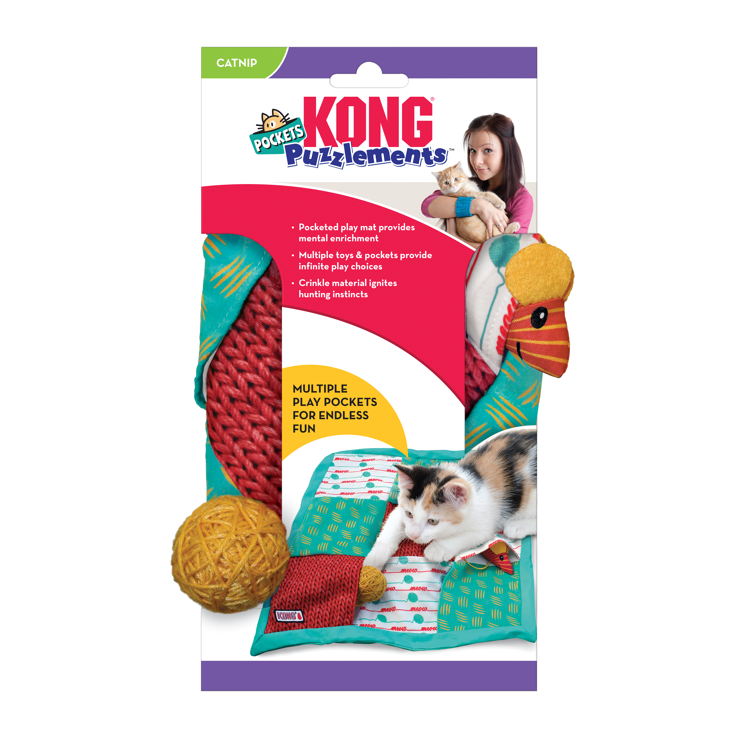 | Engage your clever kitty’s curiosity with the KONG Cat Puzzlements Pockets Cat Toy. This one-of-a-kind puzzle cat toy boasts nine pockets, perfect for hiding and seeking an abundance of toys and goodies. Crafted with a crinkly material, it promises a delightful multisensory playtime experience. The fun-filled exploration playground includes an attached ball of yarn toy that rattles playfully when batted around. To keep your curious kitty actively entertained, we’ve also included a catnip mouse and a supply of premium catnip! |