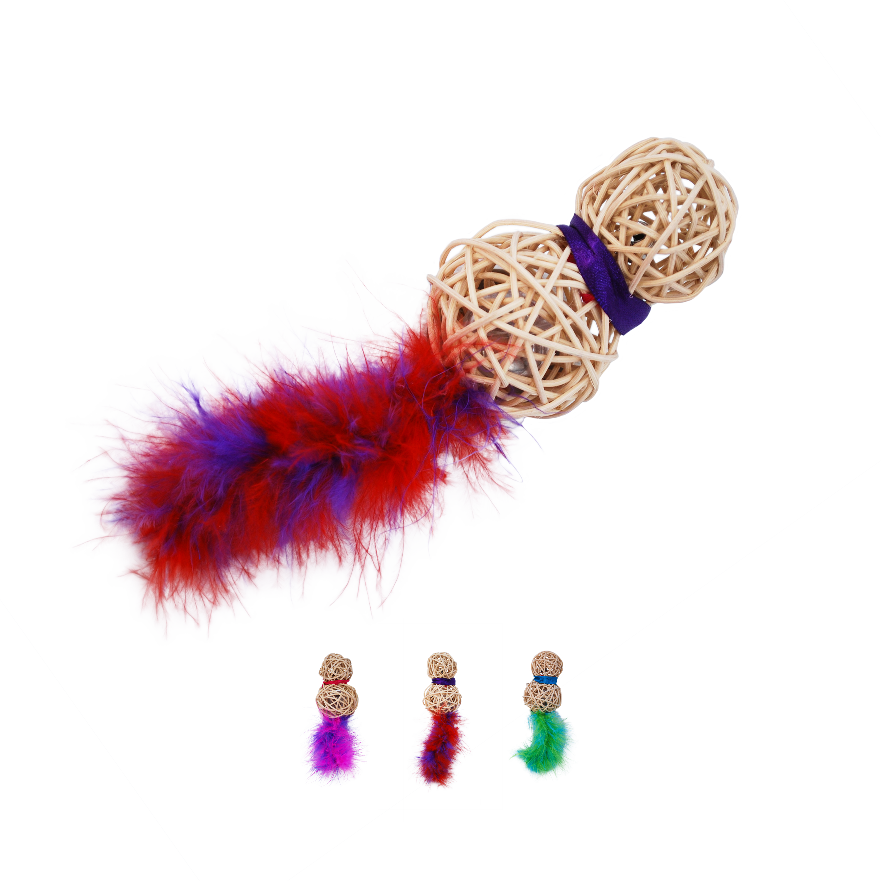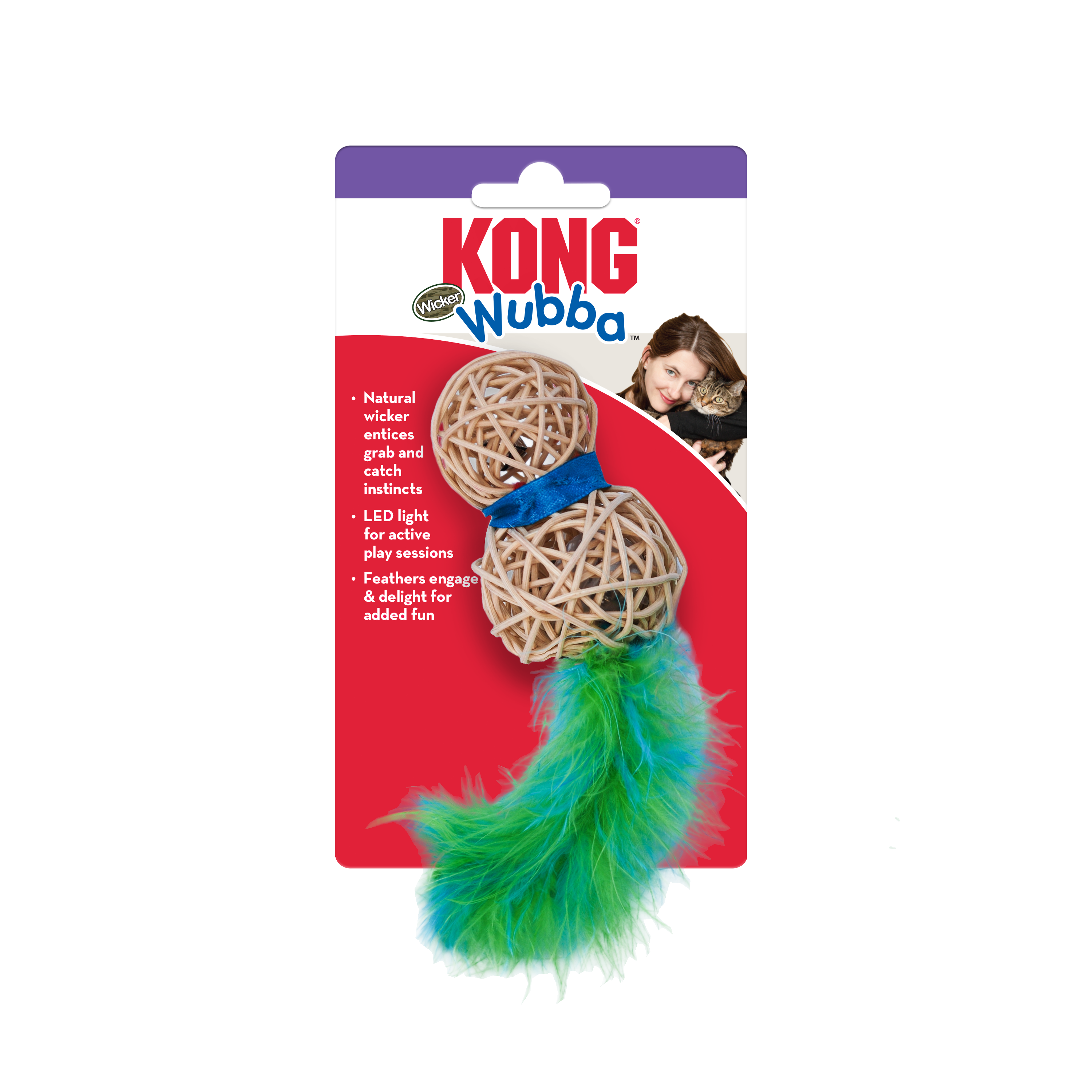 | KONG Cat Wubba is specifically developed to appeal to a cat’s instinctive desire to stalk and capture prey. It has natural wicker material sure to delight a kitty’s grab and catch instincts. An LED light adds excitement and engagement to play sessions while colorful feathers add fun and extend playtime. |