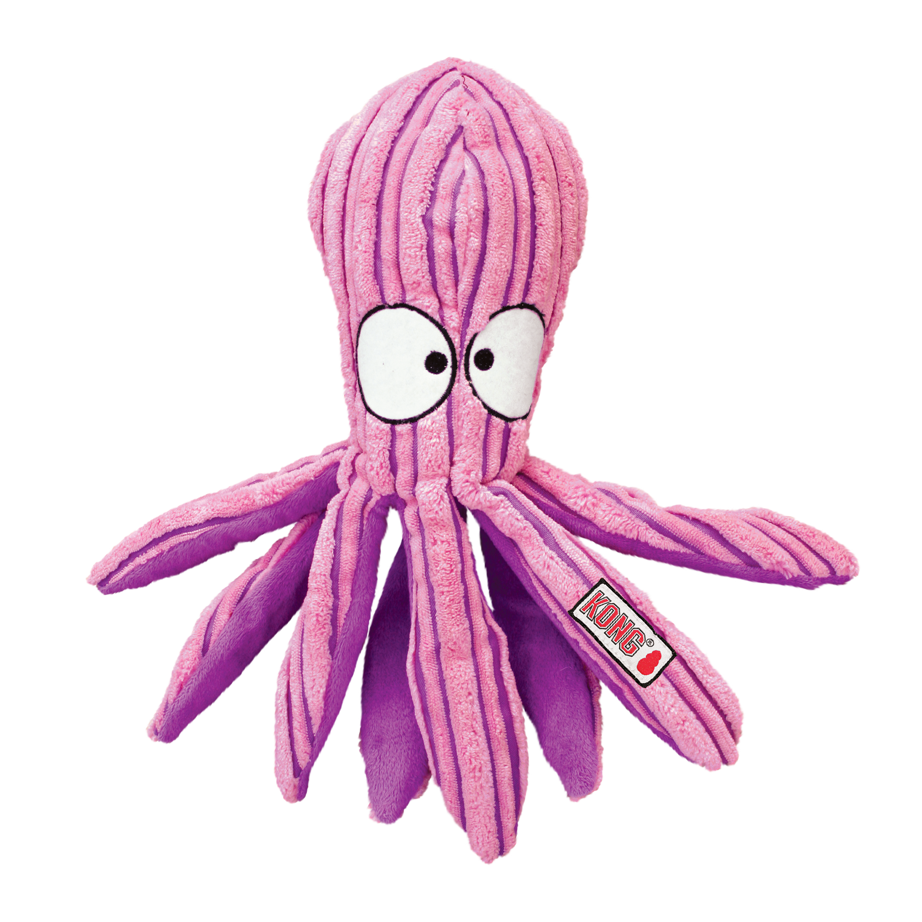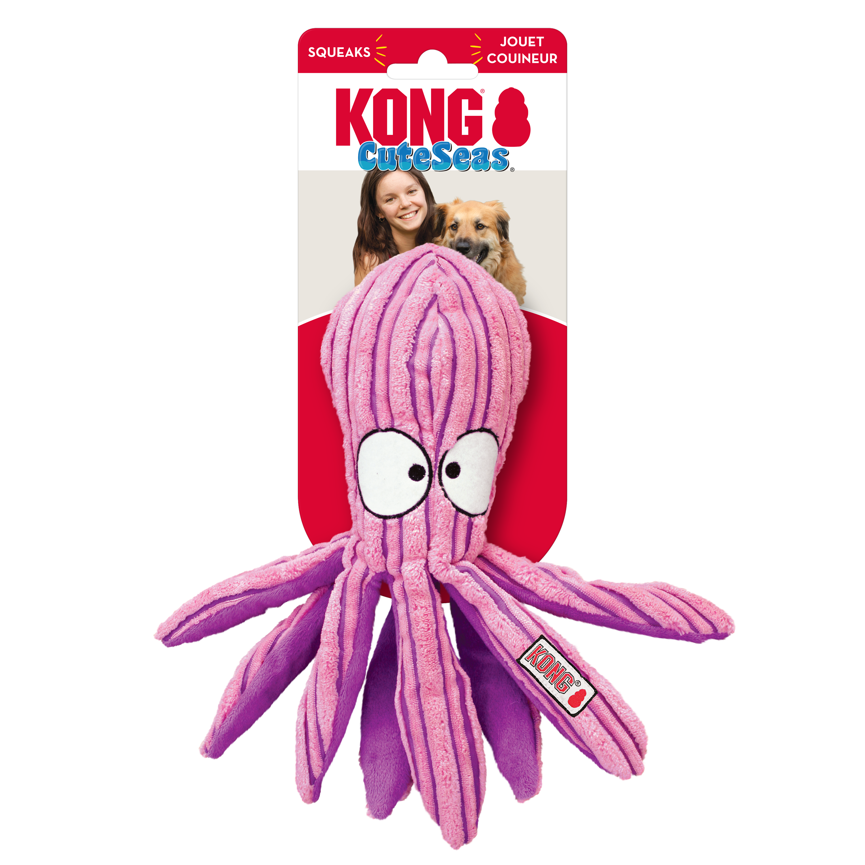 Cuddling with sea creatures has never been this cute. KONG CuteSeas are made of soft corduroy for snuggling. They also contain a squeaker and make a crinkle sound during playtime.