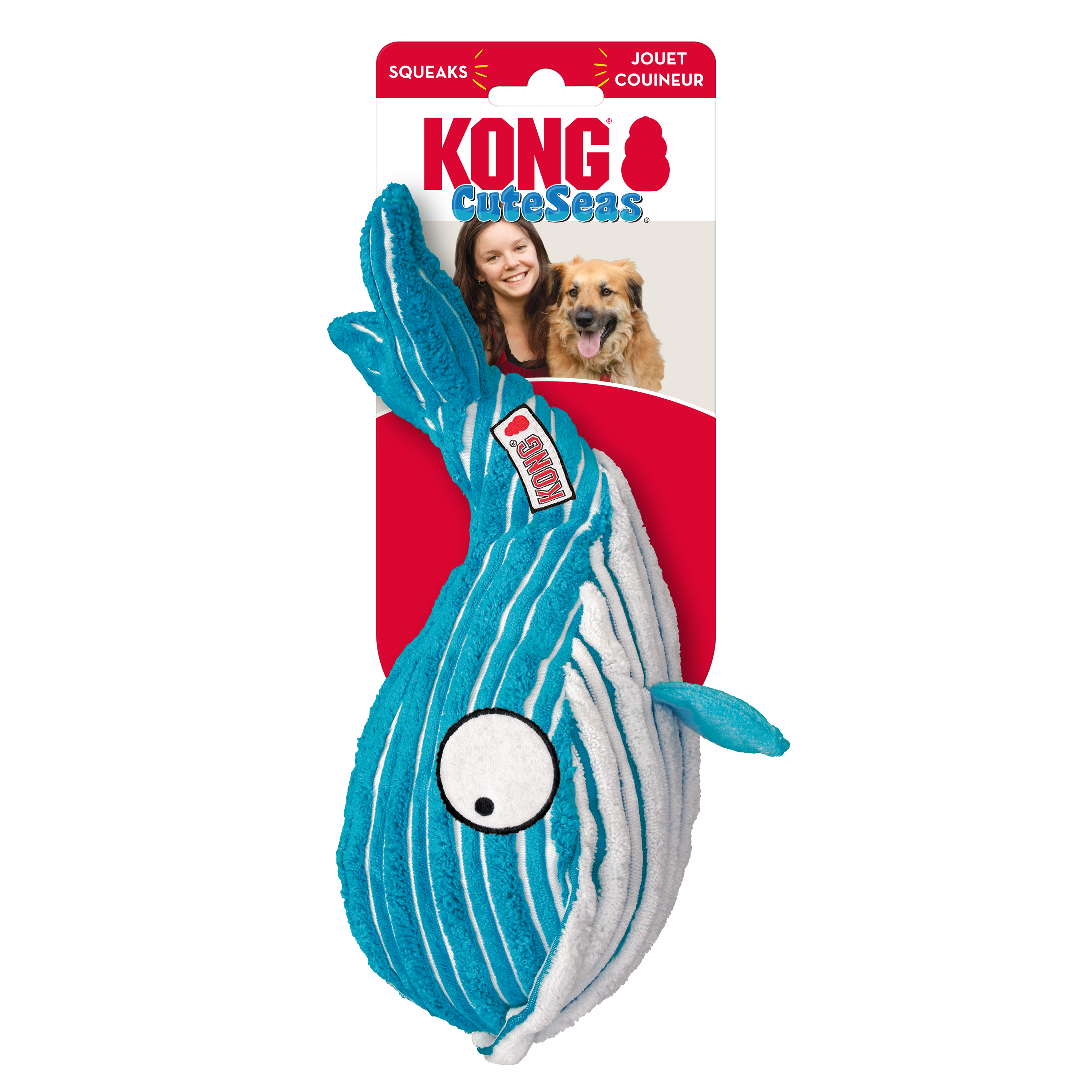 Cuddling with sea creatures has never been this cute. KONG CuteSeas are made of soft corduroy for snuggling. They also contain a squeaker and make a crinkle sound during playtime.