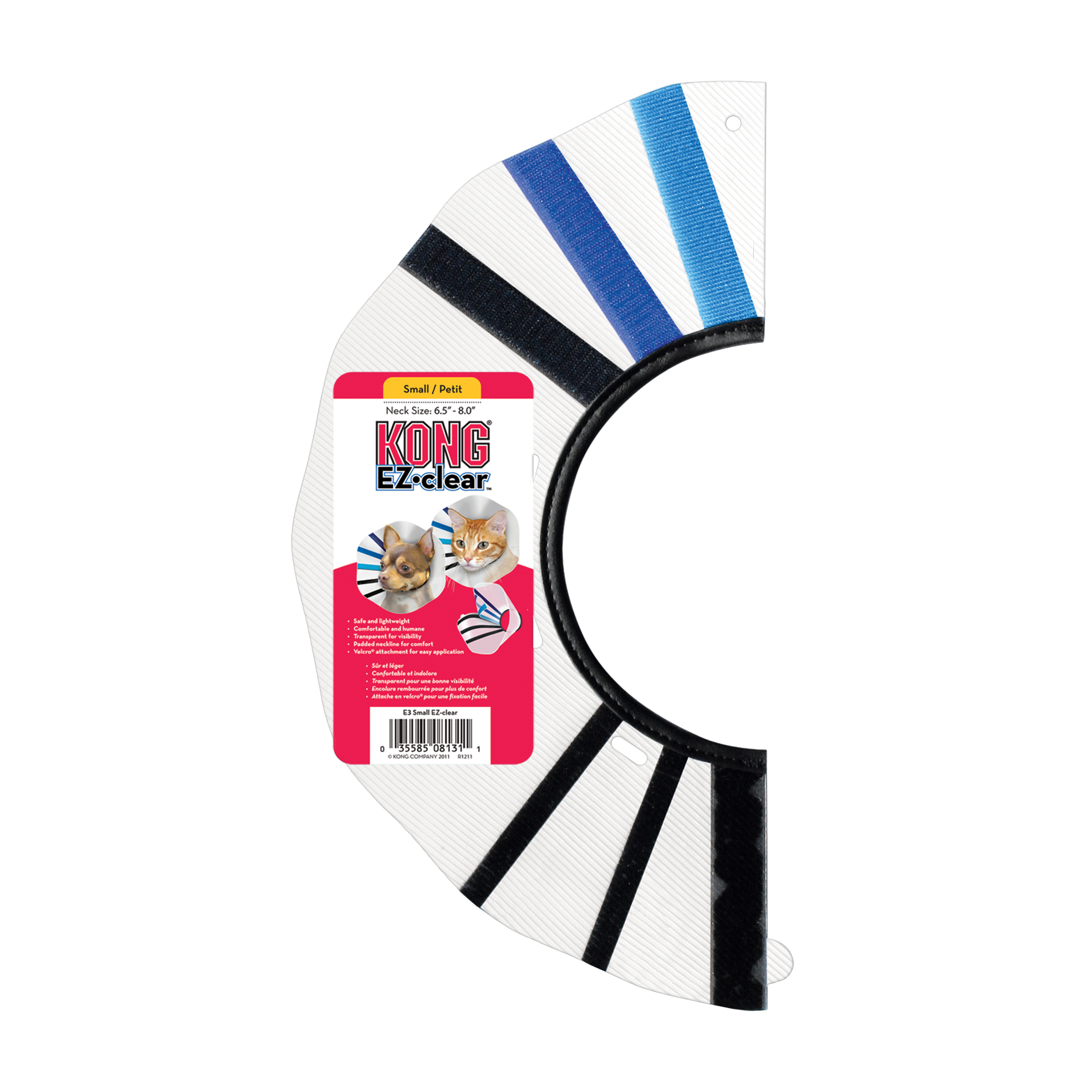 | The KONG EZ Clear™ Collar promotes healing by preventing your dog from bothering wounds while still allowing him or her to see. Hook and loop straps make this collar very easy to take on and off and to adjust for comfy fit, keeping wounds safe to mend while your dog heals. |