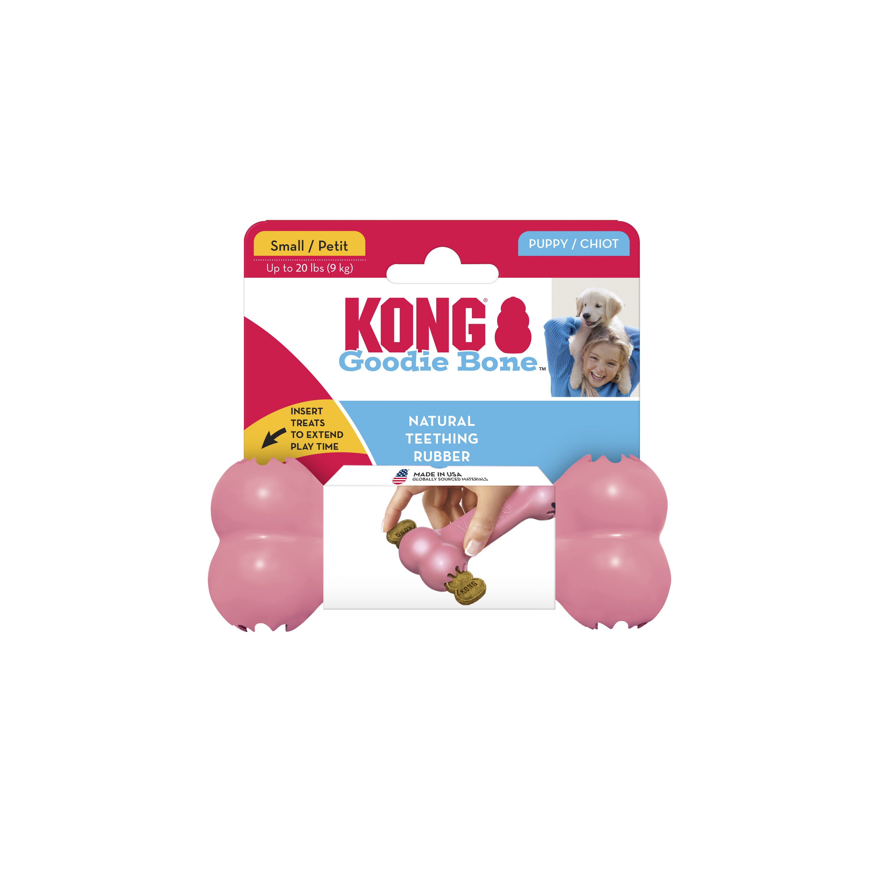 | The KONG Puppy Goodie Bone™ engages puppies that are learning appropriate chewing behavior. Made from the KONG Classic unique puppy rubber, this bone fulfills instinctual needs to chew while easing aching teeth and gums. KONG Goodie Grippers™ turn this entertaining toy into a fun treat dispensing challenge. |