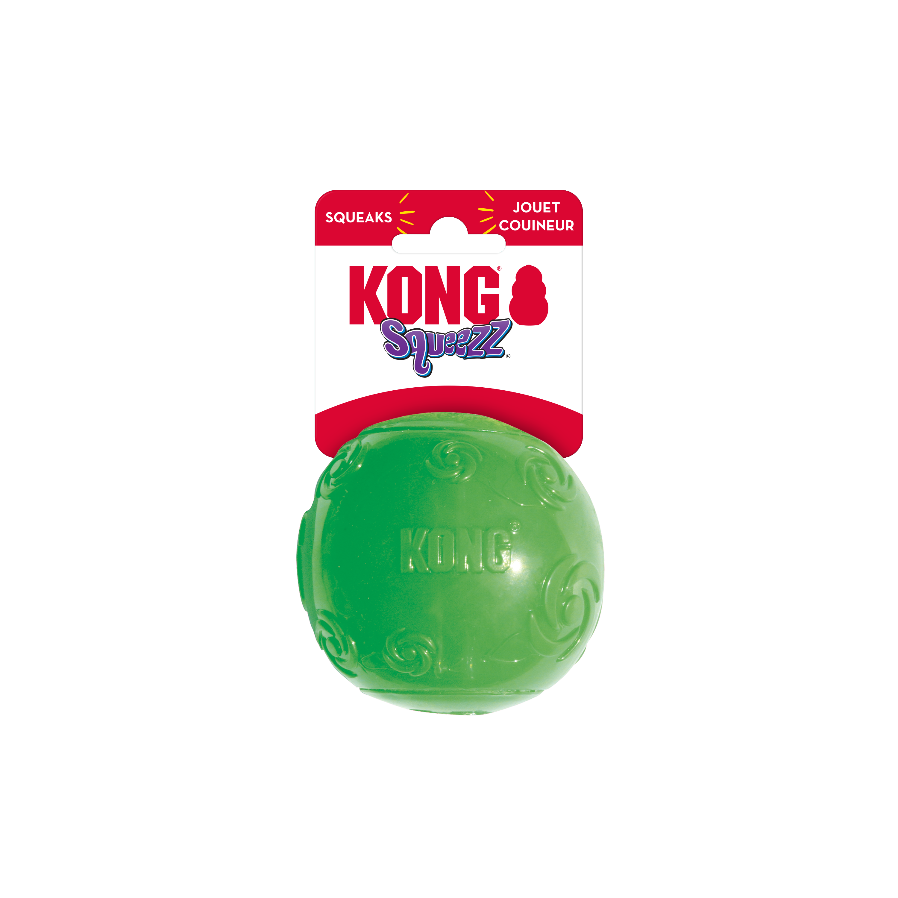 The KONG Squeezz® Ball is a great dog toy for fetch. The fun bounce and recessed squeaker provide safe play, while the grippy textures provide extra chewing enjoyment for your dog.