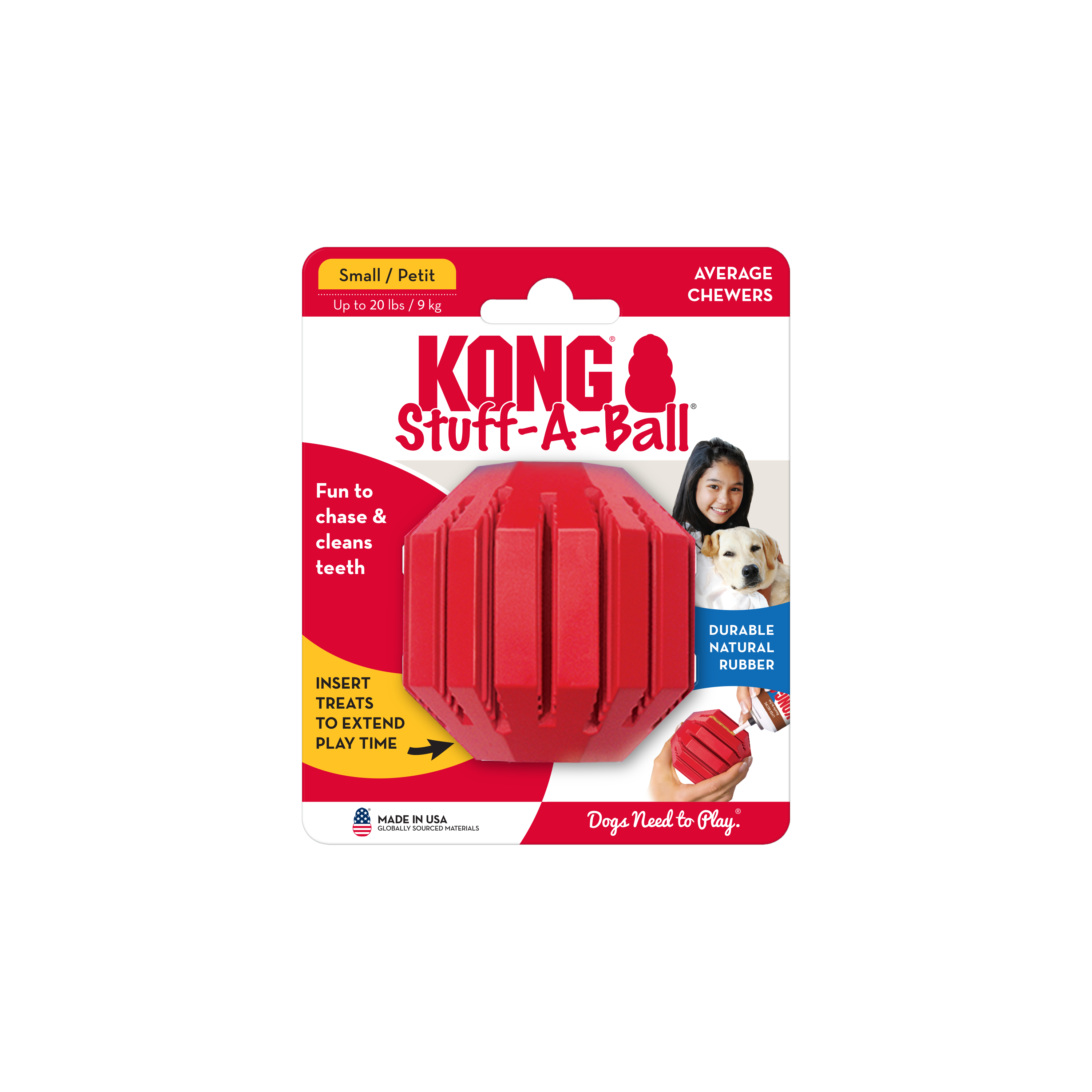 | The KONG Stuff-A-Ball helps support your dogs’ chewing behavior. Made from the KONG Classic rubber, this ball fulfills instinctual needs to chew while cleaning teeth and gums. KONG ridges turn this toy into a fun treat dispensing challenge. To extend playtime stuff with KONG Snacks and KONG Easy Treat. |