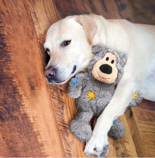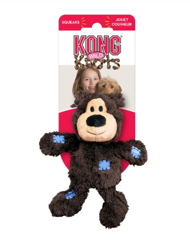 KONG Wild Knots are soft and cuddly on the outside while durable and strong on the inside. Wild Knots bears are sure to be a hit with dogs and their pet parents. Dogs love the knotted skeleton, and the reinforced plush body provides extra durability. KONG Wild Knots have less stuffing for less mess and they squeak to entice play.