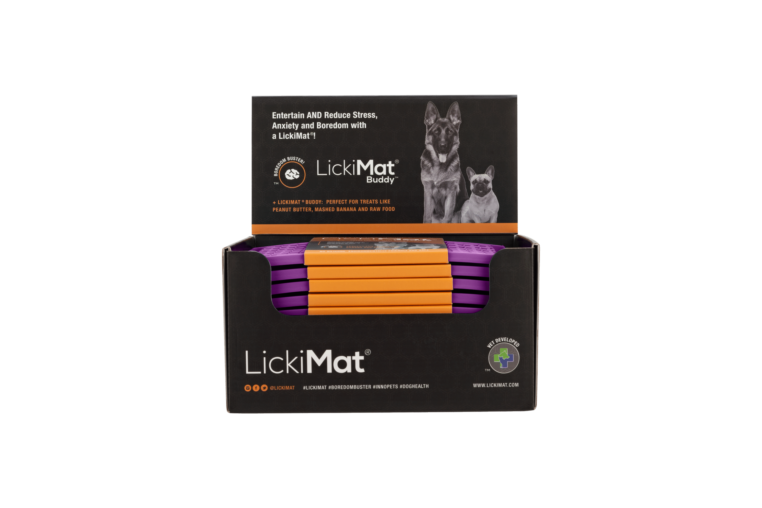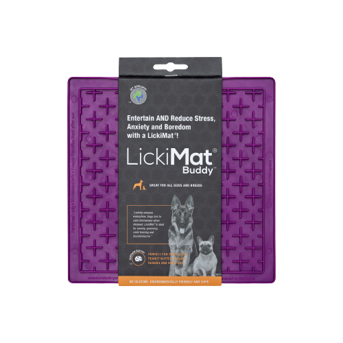 The LickiMat® Classic Buddy™ Slow Feeder, with its cross maze design is perfect for fast eaters or pets who need more stimulation. It also works well for giving supplements and medications. It helps reinforce good behaviour, acts as a perfect aid for training and reduces anxiety.