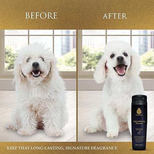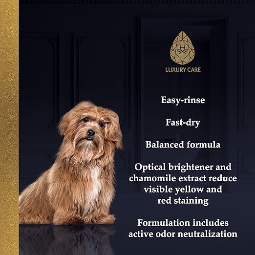 | Whitening shampoo formulated to enhance brightness in light-colored coats without harsh chemicals. |