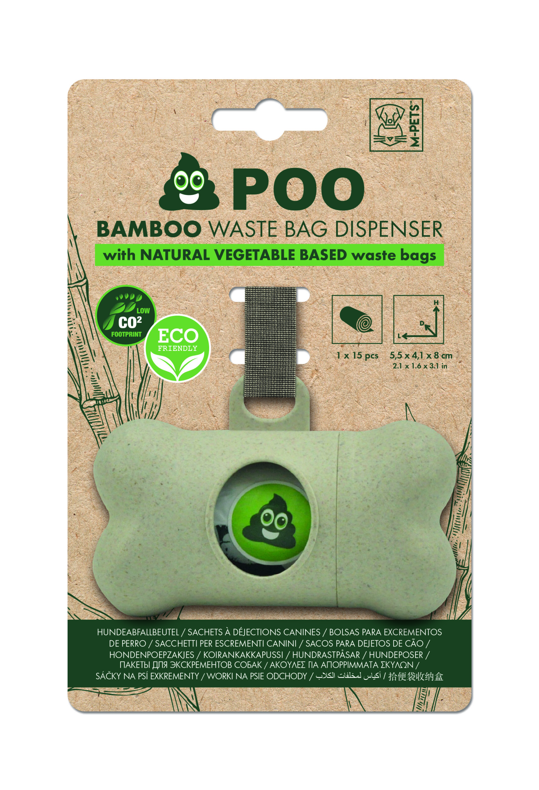 • M-PETS Poo Bamboo Waste Bag Dispenser With Natural Vegetable Base Waste Bags – 15 Bags