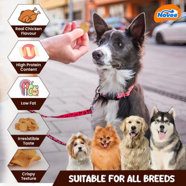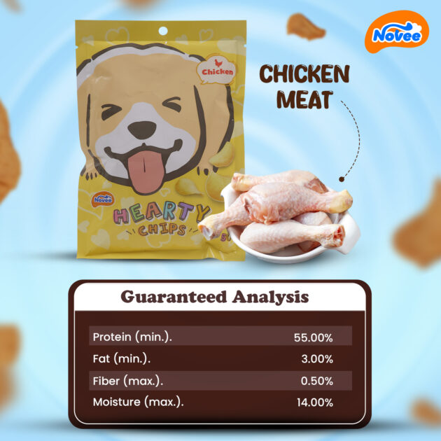Novee Hearty Chicken Chips are crunchy, oven-baked treats made with real chicken slices. These protein-packed snacks are perfect for quick rewards or healthy munching throughout the day.Features