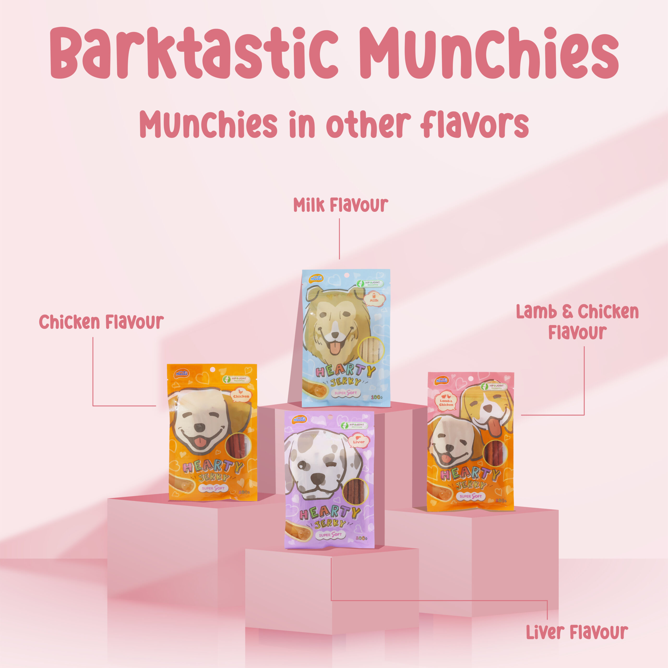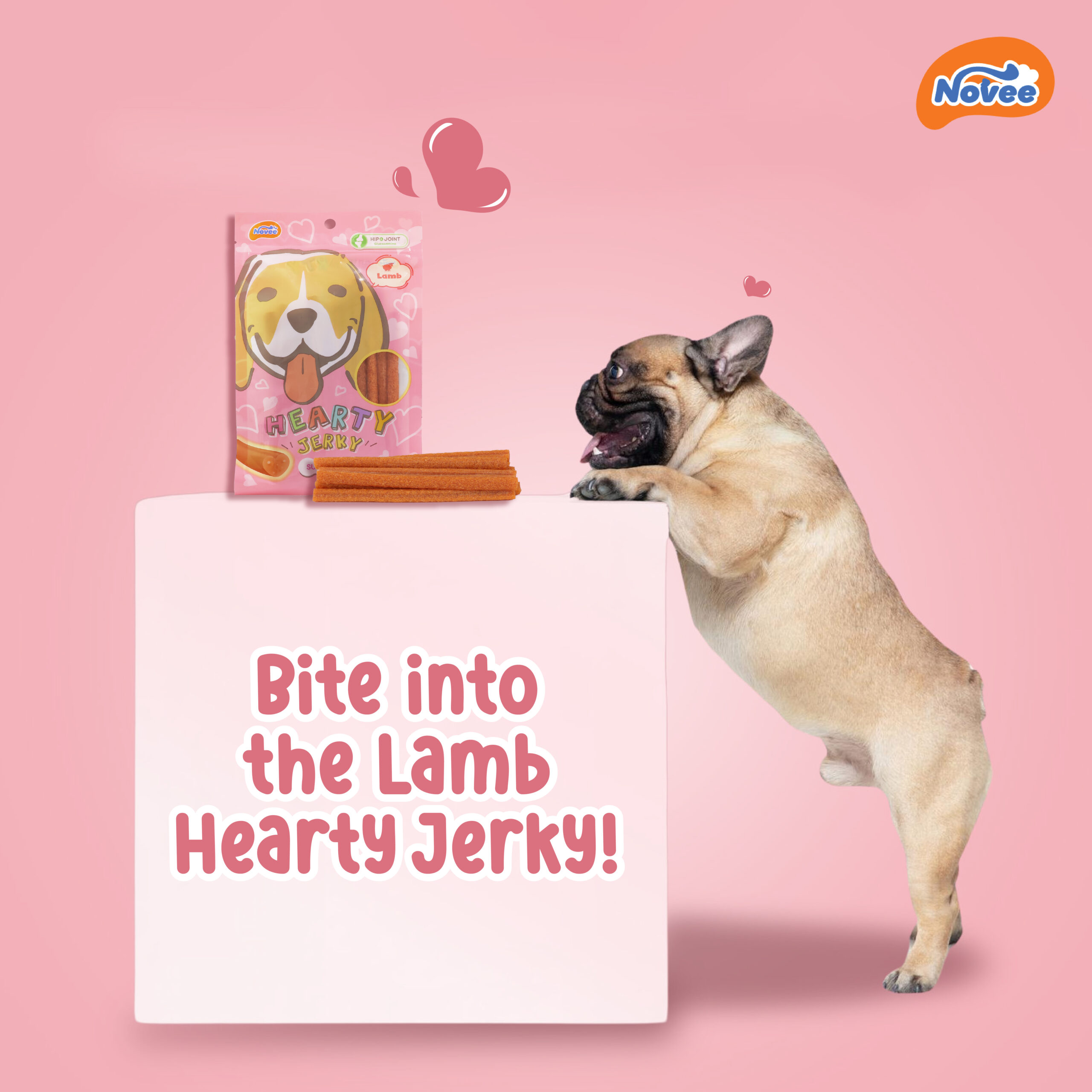 Novee Hearty Jerky – Lamb & Chicken Flavour Assorted, Nutritional Premium Dog Snacks (100g) Give your dog a protein-packed and flavorful treat with Novee Hearty Jerky – Lamb & Chicken Flavour Assorted. Made with high-quality lamb and chicken, these soft, chewy treats are rich in essential nutrients to support muscle health, energy, and overall well-being. Their bite-sized pieces make them ideal for training, rewarding, or daily snacking, ensuring a tasty and nutritious treat for dogs of all sizes.