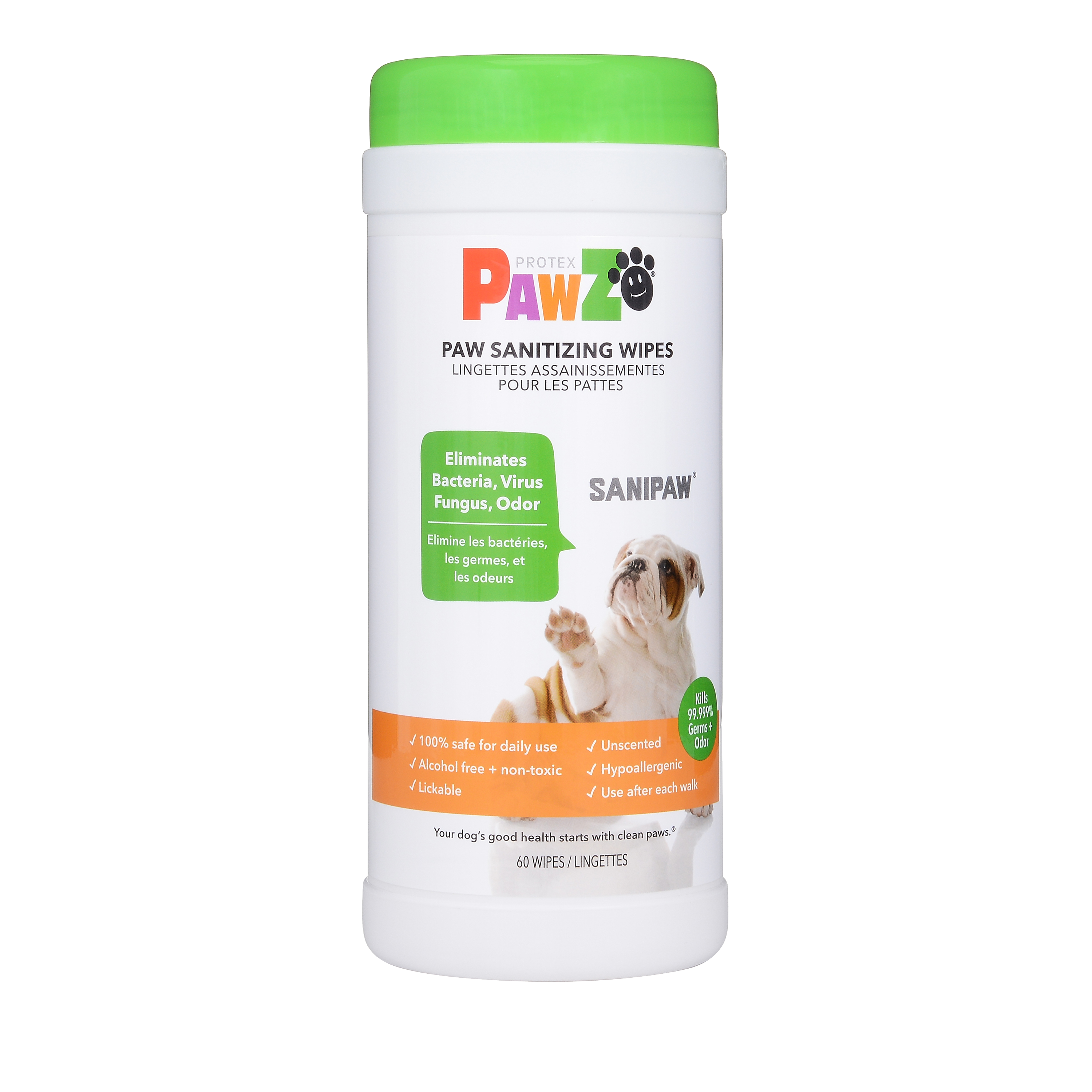 | Removes the street from your dog’s feet!™ Dogs step in all sorts of yucky stuff when they’re romping and exploring outside. Fortunately, now you have two grime-fighting tools to protect your home from messy, dirty paws. SaniPaw Spray and Wipes contain a sanitizing agent found in popular mouthwashes that safely eliminates 99.99% of bacteria, virus, fungus and odor on contact. A simple spray or wipe after every walk does it all. |