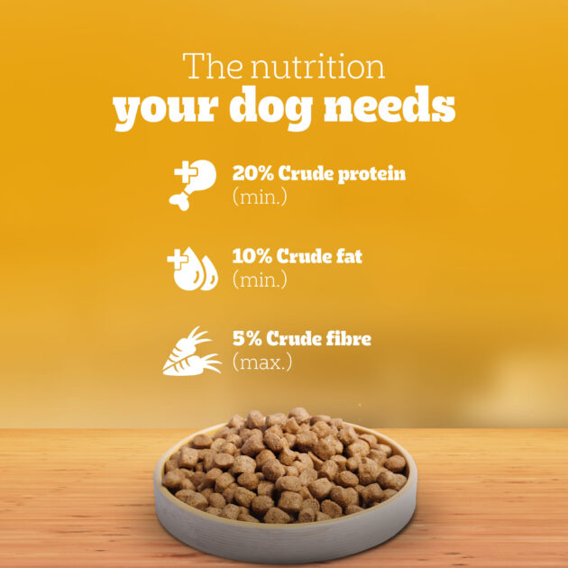 | 🐕 HEALTH BENEFITS: When fed as recommended, this dry dog food supports healthy muscles & bones (High Quality Protein & Calcium), a healthy digestive system (Dietary Fibre) and a shinier coat (Omega 6 & Zinc). |