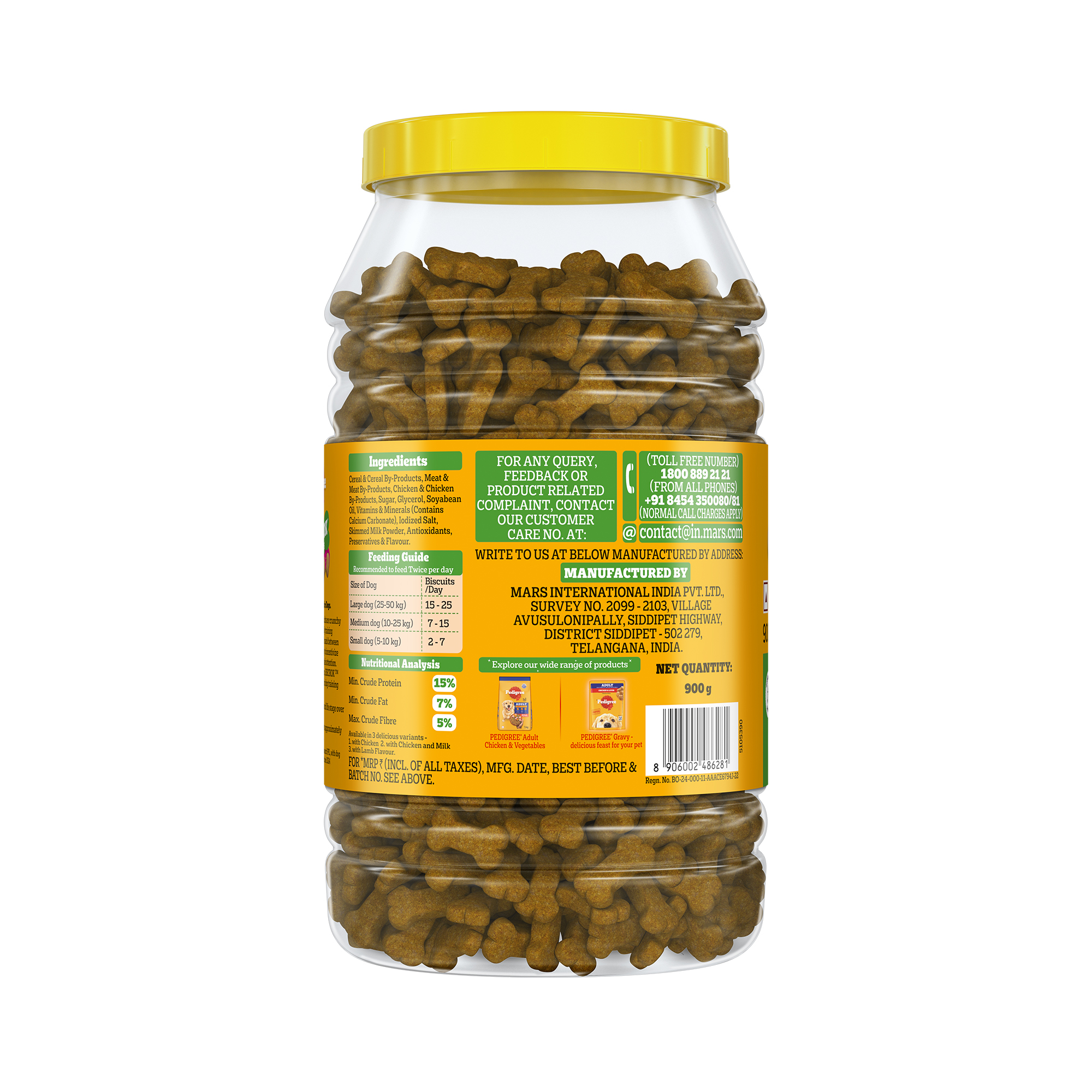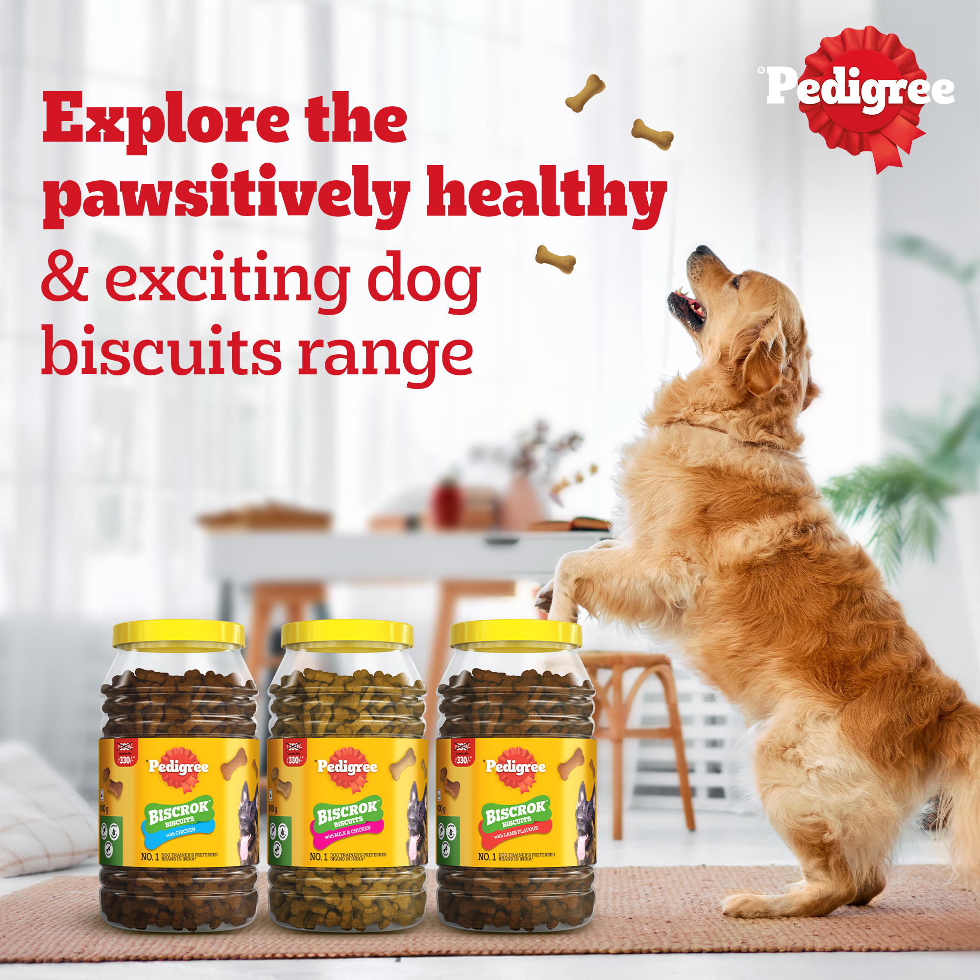| DELICIOUS FLAVOUR: Pedigree Biscrok Biscuits Dog Treats in Chicken with Milk Flavour, are crunchy & nutritious biscuits that delight your dog. |