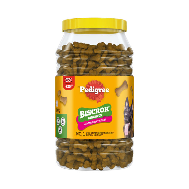 | DELICIOUS FLAVOUR: Pedigree Biscrok Biscuits Dog Treats in Chicken with Milk Flavour, are crunchy & nutritious biscuits that delight your dog. |