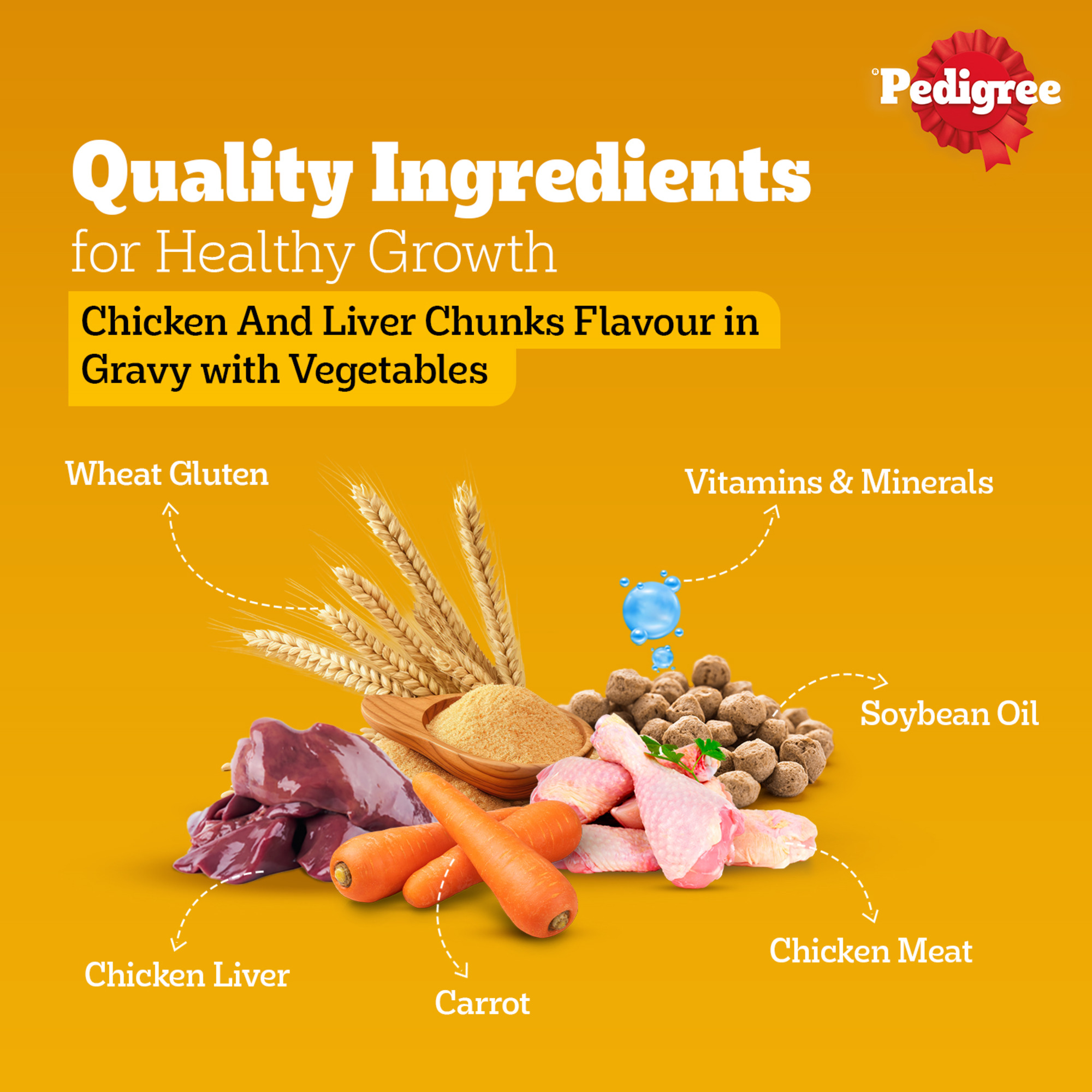 | 🍗 DELICIOUS FLAVOUR: Pedigree Puppy Wet Dog Food, Chicken and Liver Chunks Flavour in Gravy with Vegetables, contains a gravylicious flavour. |