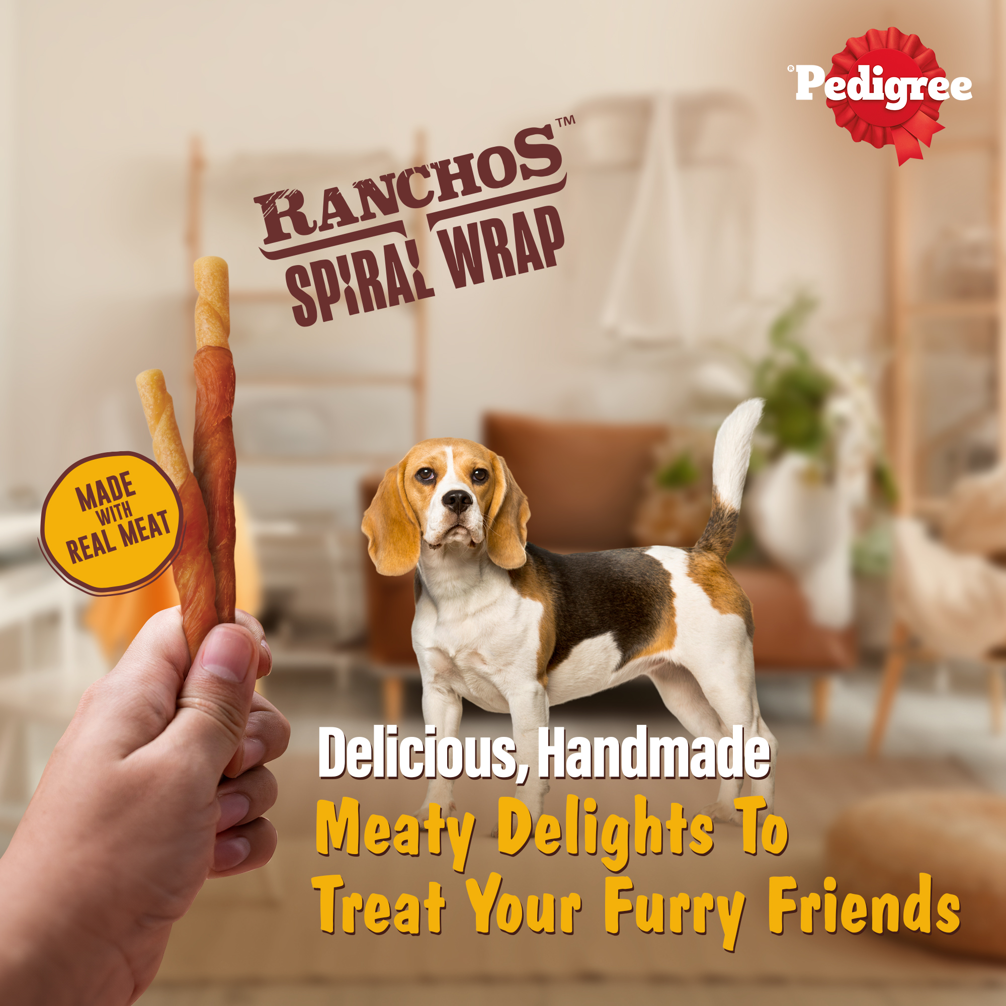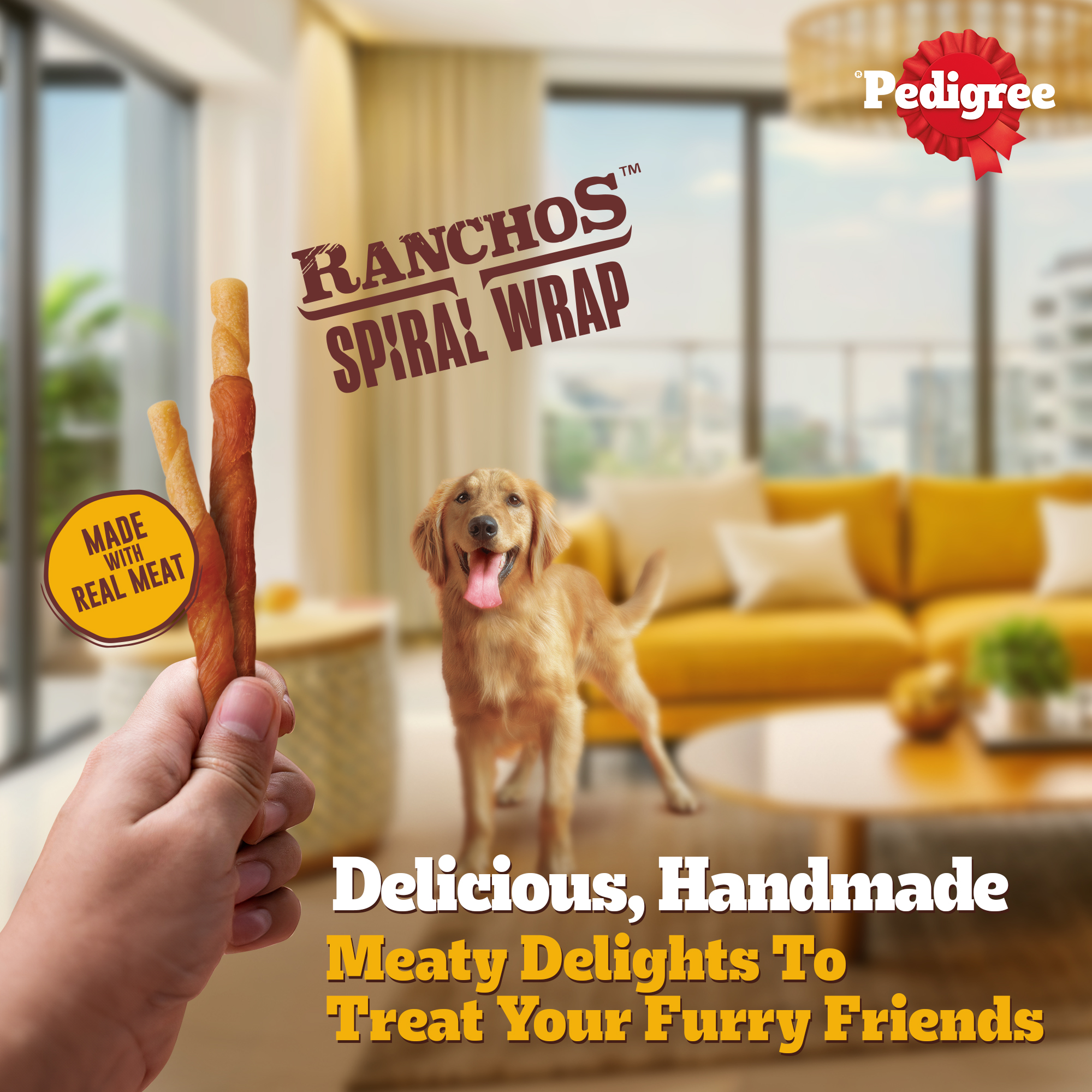 Share moments of happiness and joy with your dog, thanks to healthy and tasty Pedigree treats. Pedigree RANCHOS Spiral Wrap in Chicken and Smoky Lamb Flavour is a special treat to delight your furry buddies after a fun training session or in between meals. These spiral wrap Pedigree dog treats are handmade with real meat that entices their taste buds and brings them joy. The delicious chicken and smoky lamb flavours will keep your dog begging for more. These Pedigree treats are high in protein and low in fat with no added sugar, making them a healthy dog treat option. These treats are a delicious complement to your dog’s main meal, but ensure they get essential nutrients from their regular food. These treats are designed for adult dogs over 1 year old, promoting their health and joy. Feed as per the feeding guide mentioned on the back of the pack, depending on your dog’s breed size. Celebrate happy moments and create fun memories with your furry buddy by treating them to these pawfect delights.