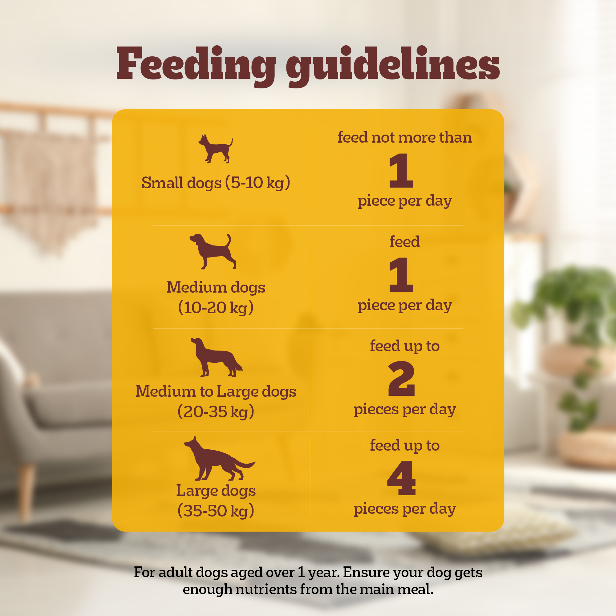 🐶SUITABLE FOR: It is suitable for adult dogs over 1 year old. Refer to the back of the pack for a feeding guide.