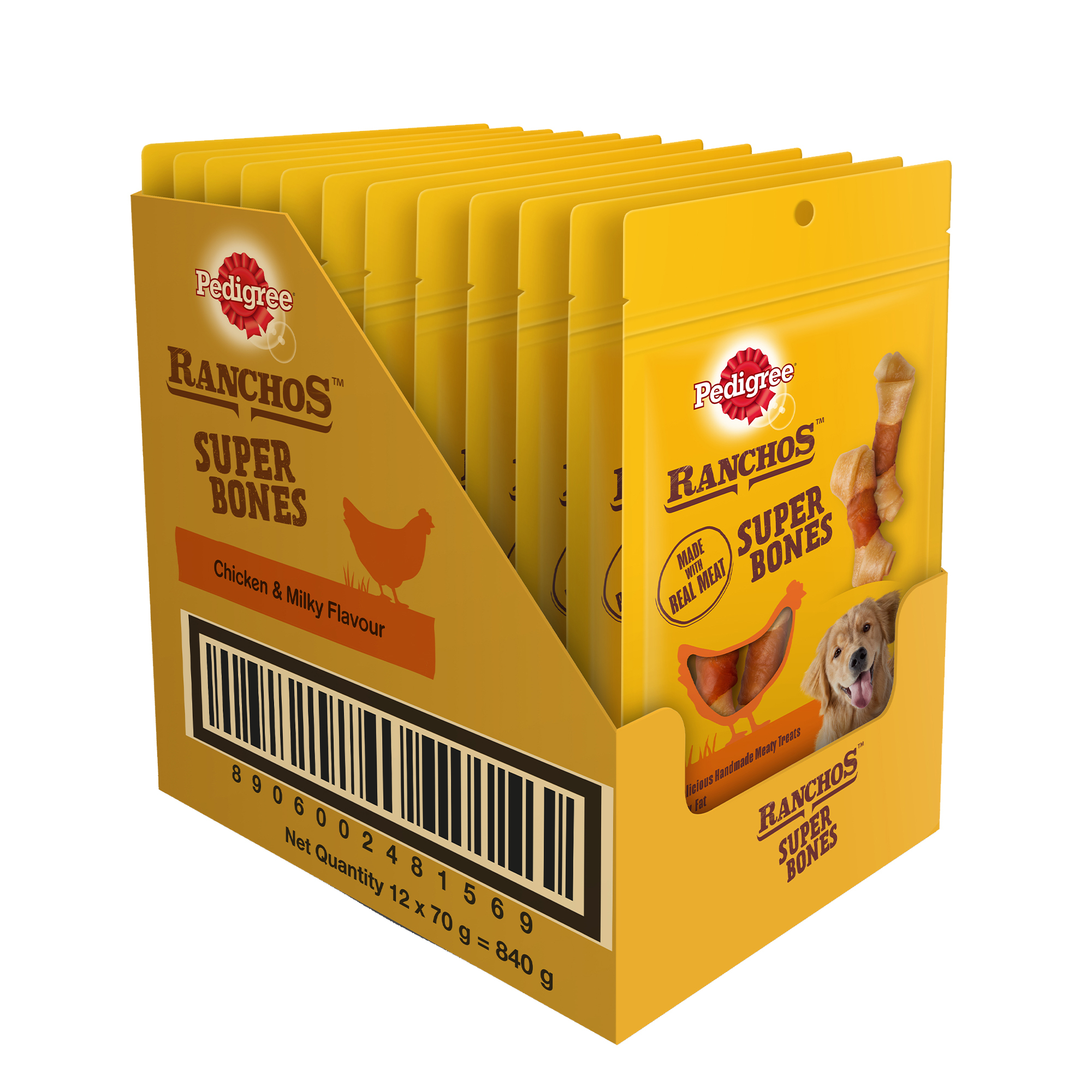 šDELICIOUS FLAVOUR: Pedigree Ranchos Super bones in Chicken and Milky Flavour, is a treat that entices your dogās taste buds & sparks their happiness.