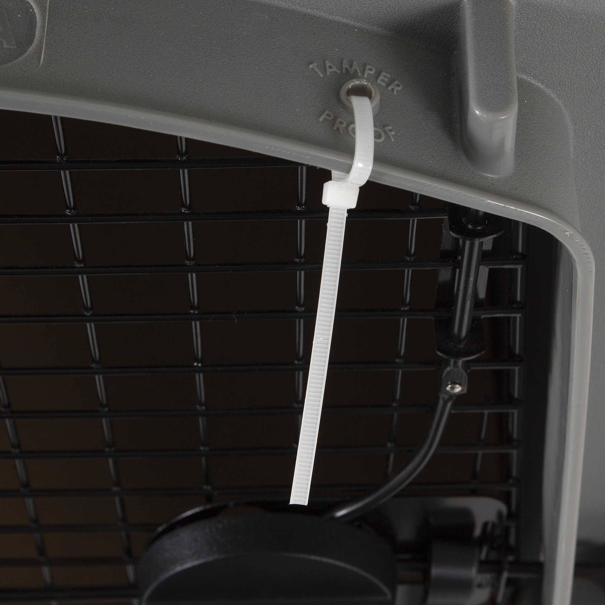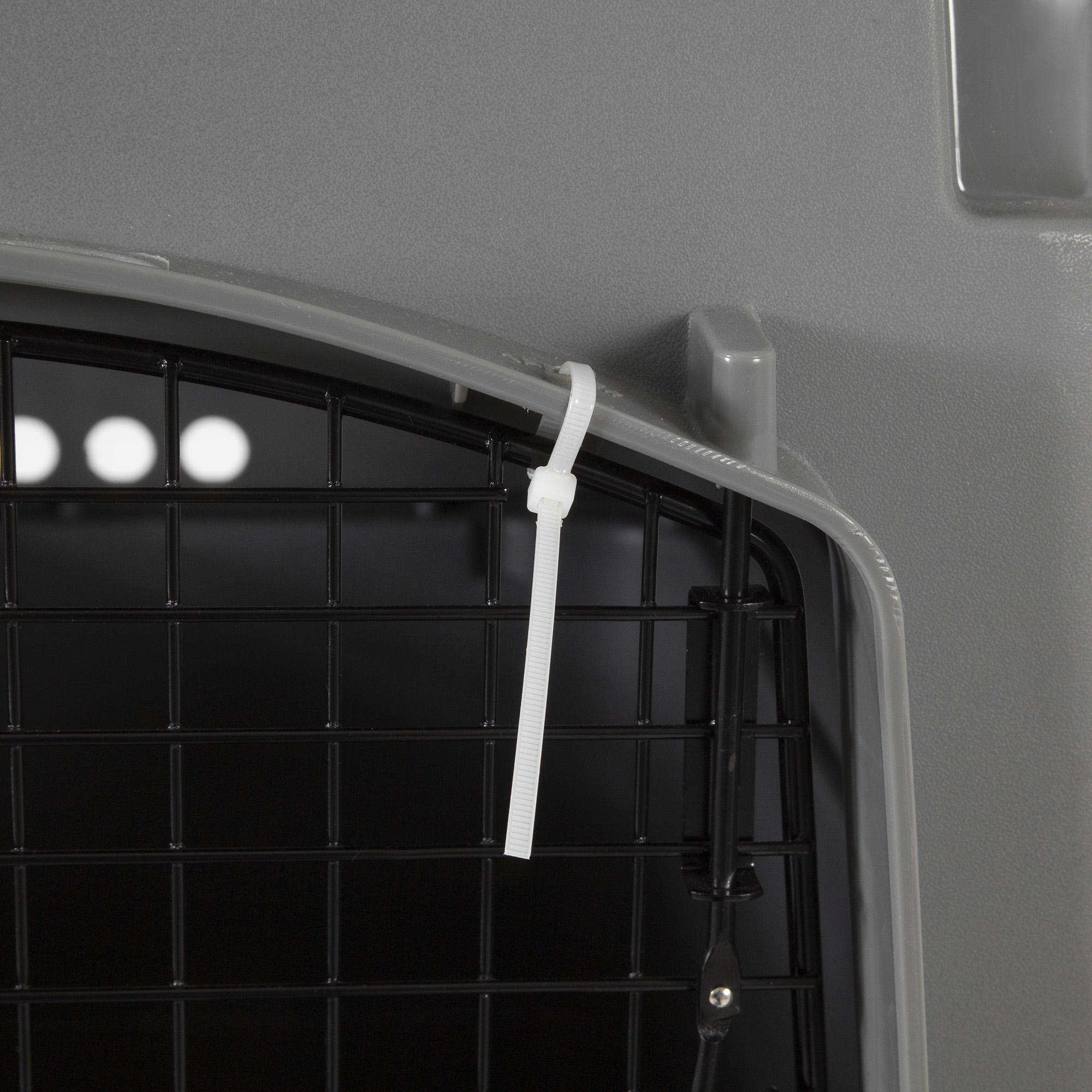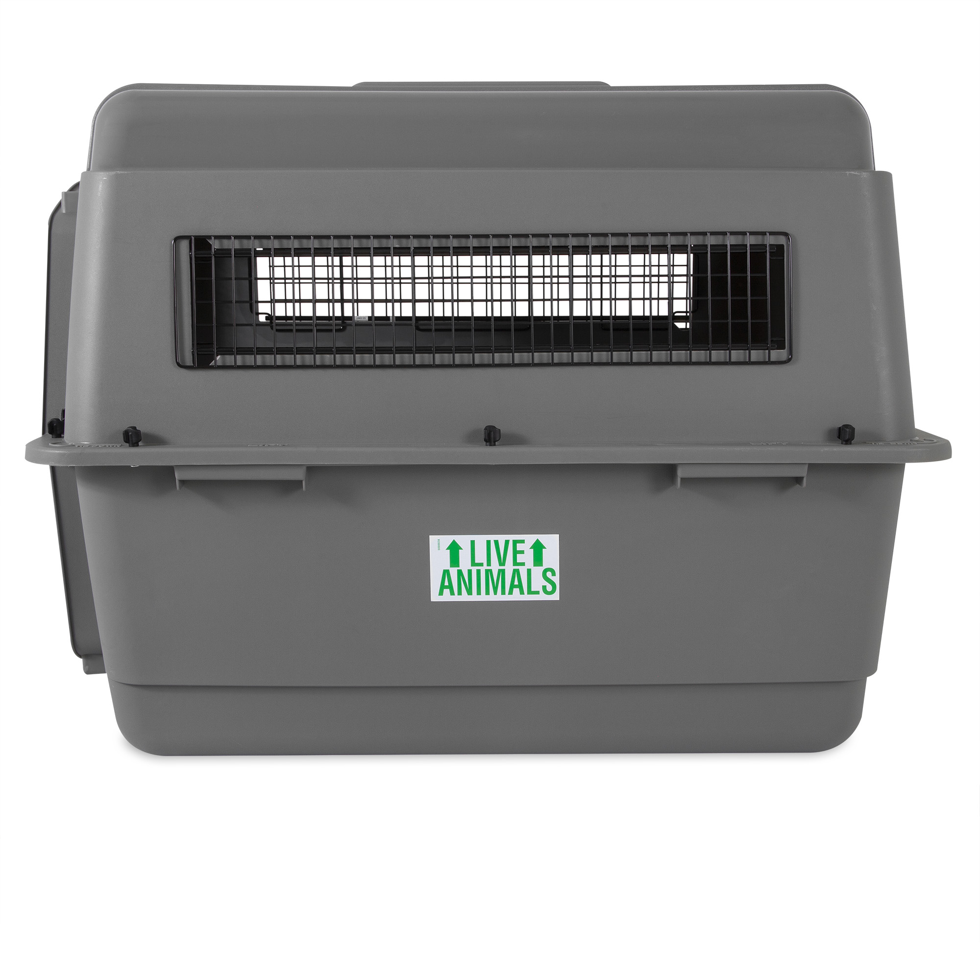 This heavy-duty travel kennel features high-strength construction made with 90% pre-consumer recycled plastic, 360-degree wire ventilation windows for plenty of healthy airflow, and non-corrosive wing-nuts and bolts for durable assembly. |