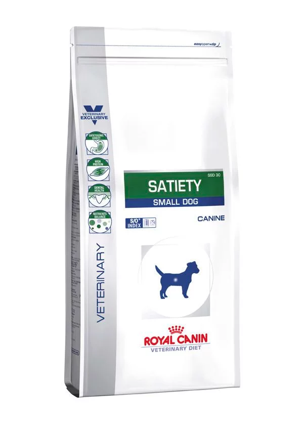 ROYAL CANIN® SATIETY WEIGHT MANAGEMENT dry is a complete dietetic feed for dogs, formulated for the reduction of excessive body weight. Low energy density. RECOMMENDATIONS: It is recommended that a veterinarian’s opinion be sought before use. Feed SATIETY WEIGHT MANAGEMENT dry until target body weight is achieved and after if required to maintain target body weight. For an efficient weight loss or ideal weight maintenance, the recommended daily energy intake should not be exceeded.