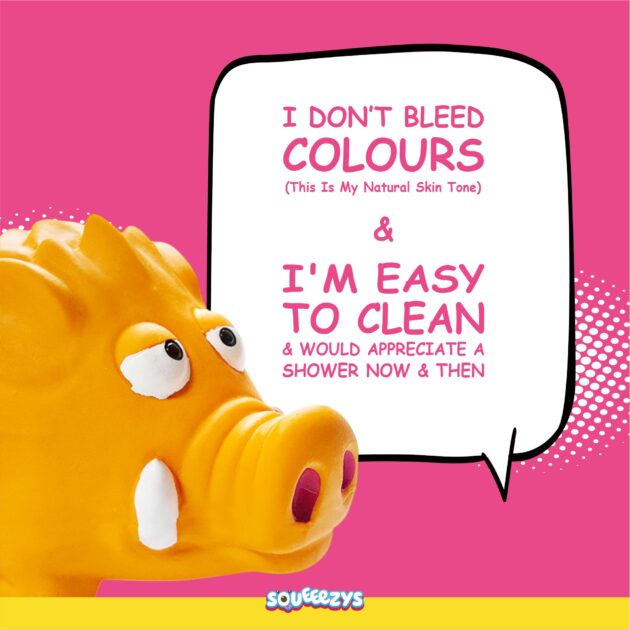 Hey there, future best buddy! I’m WARTHOG! I’m not just any dog toy – I’m part of the Squeeezys Collection, a fun, homegrown dogs toys brand that keeps you entertained while giving your hooman peace of mind. I’m designed especially for extra small to medium-sized pups, with a durable yet gentle build that can handle all your playful bites and tugs. We’re going to have tons of fun together, making memories with each game of fetch, tug, and chew!