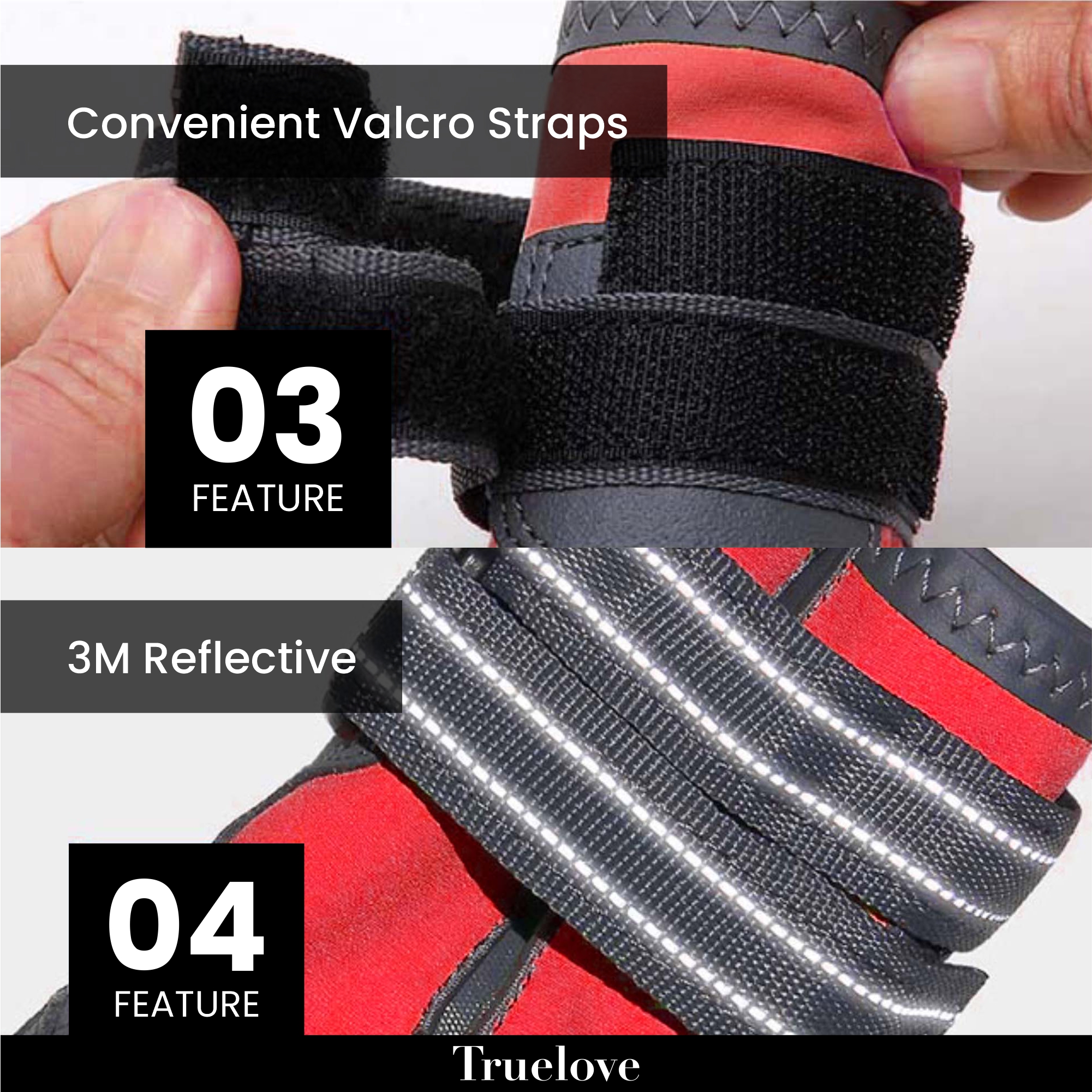 So we introduce you to the BarkButler x TrueLove Dog Shoes, the ultimate footwear solution for your furry friends. Crafted with care and precision, these shoes are unparalleled in their comfort and functionality. Each pair of these dog rain shoes features an anti-slip grooved sole that provides your pet with superior traction, preventing slips and falls on wet surfaces, making them the perfect choice for dog paw care on both city streets and outdoor adventures.
