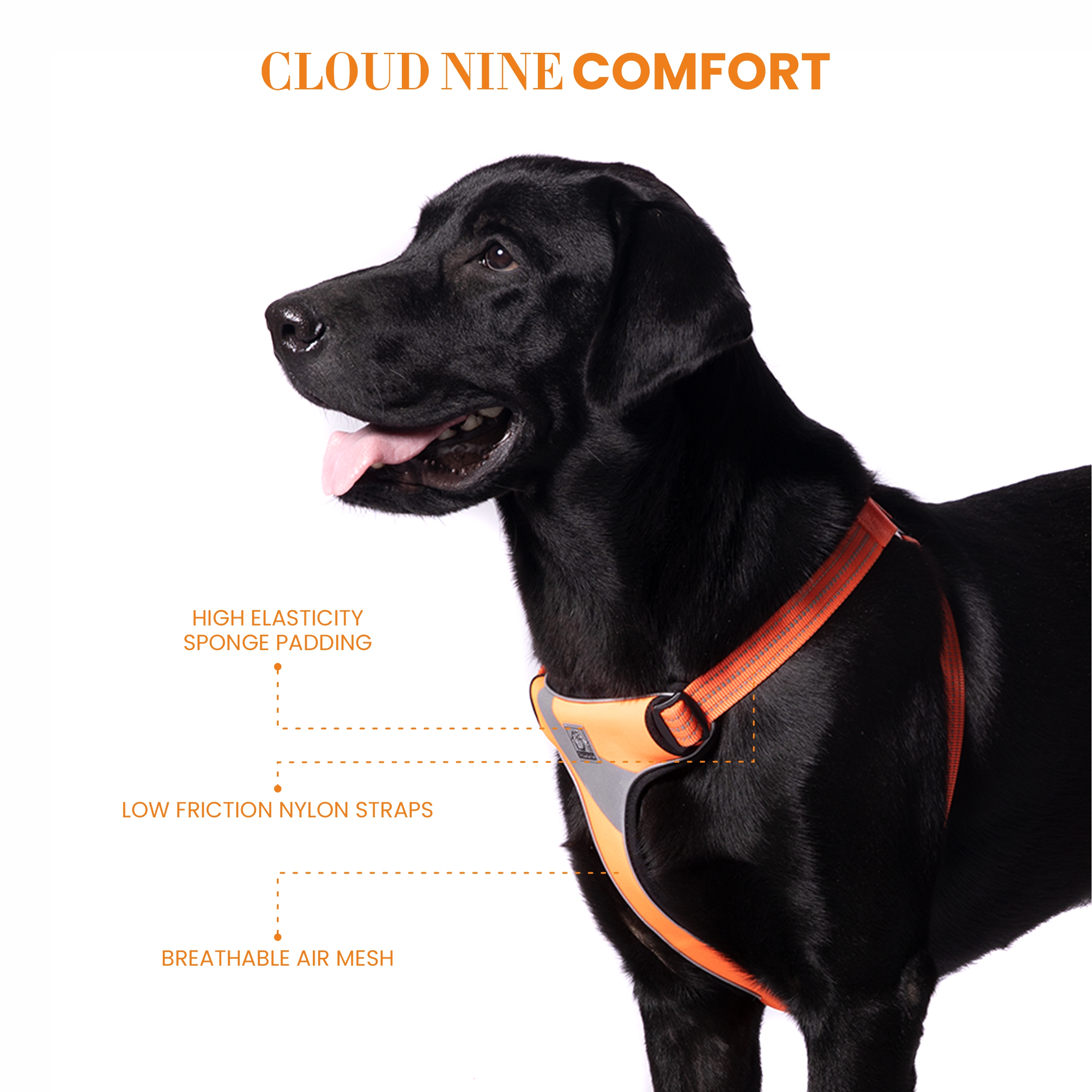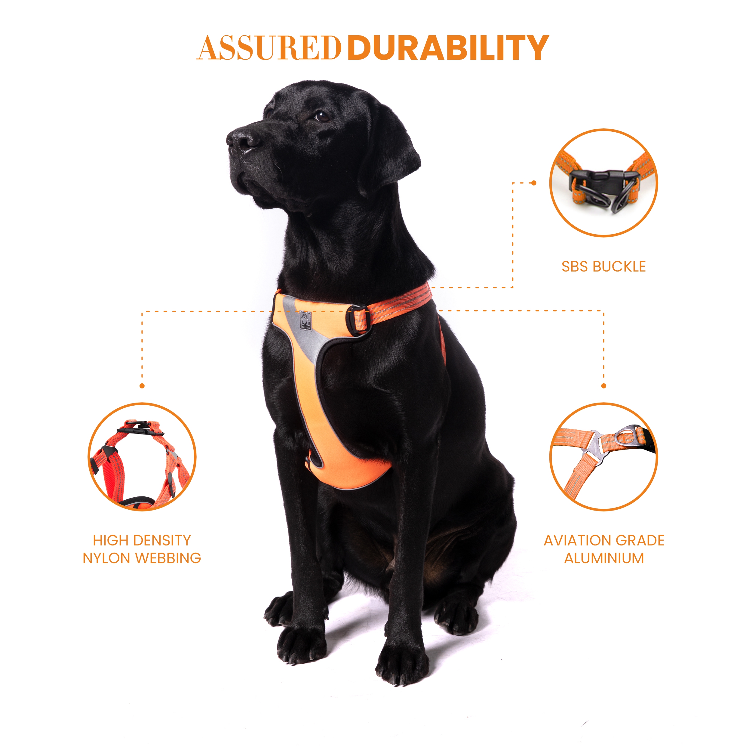 Barkbutler x Truelove No-Escape Step-in no choke dog padded harness is the only harness you need for your doggy. What makes Truelove pet vest one of the best in the world? This cute chest harness design has been equipped with heavy load-bearing capacity SBS buckles for enhanced security, High-density nylon webbing for longevity and the Aviation Grade Aluminium D-rings keep the harness light while maintaining durability. When it comes to comfort, the ultra-soft & comfortable, breathable air mesh with high elasticity sponge padding, combined with low friction soft nylon straps makes it an extremely comfortable choice for long & short walks. The 3M reflective stitching & piping by 3M Scotchlite – pioneers in Safety equipment around the world, makes walking in the dark with this dog body harness brighter & much safer. For the perfect fit, this harness is adjustable at the chest area. Measure your pet before purchase, refer to the sizing chart in our product images section. Matching leash option available with this harness. Hand Wash only. Fun Fact: Step-in harnesses were invented for nervous dogs who object to having harnesses put on over their heads. They are also much harder to escape from in comparison to other harnesses.