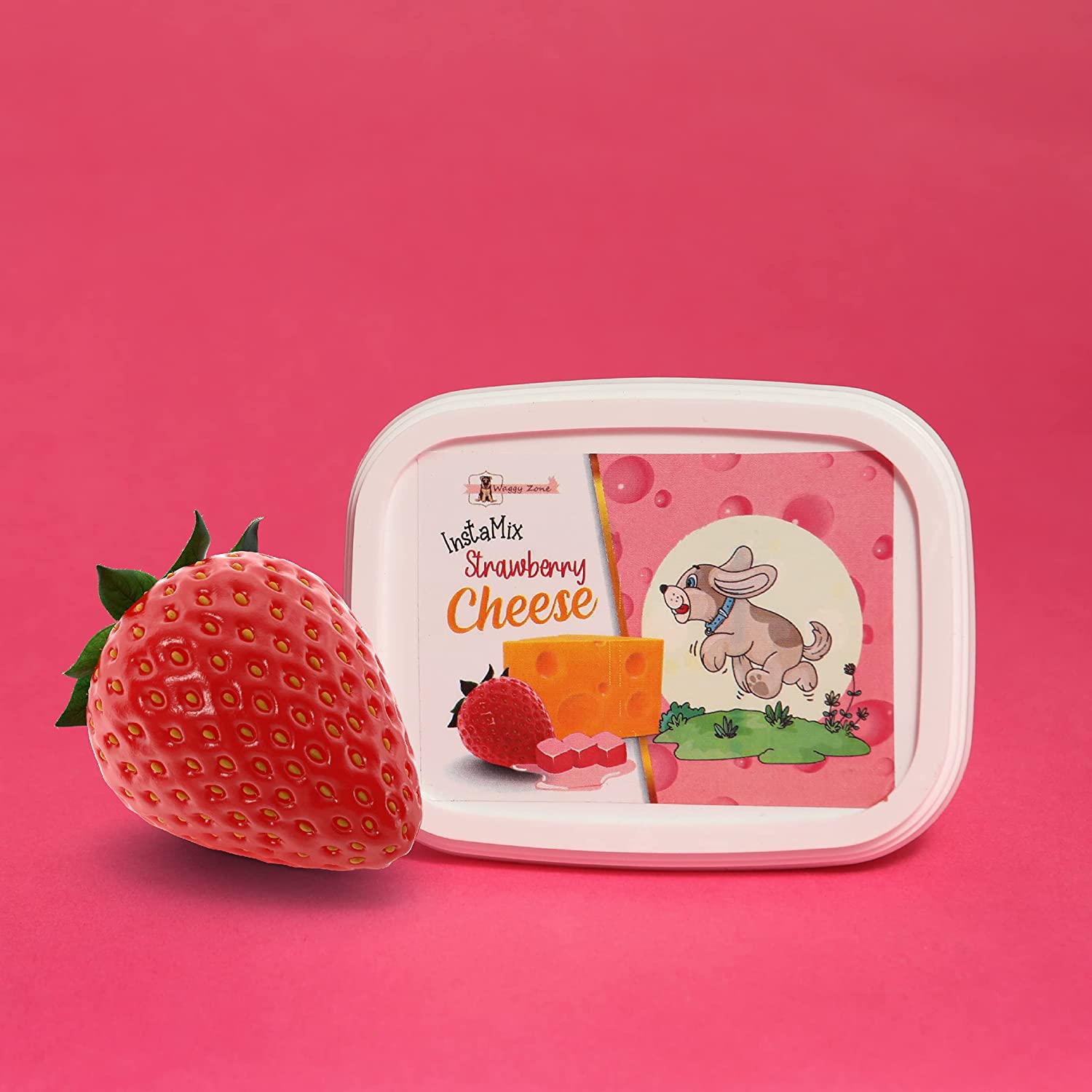 About the Product – Now you can make doggy Cheese Spread in 3 simple steps! 1st add water (approximately 10ml), 2nd stir it well and 3rd add some of your love and feed your fur baby in your own creative ways. These Cheese Spreads are made from Cheese Powder & natural fruit powder. Ingredients – Cheese Powder, Natural Strawberry Fruit Powder How to Use – You have to add water and then Stir it well.