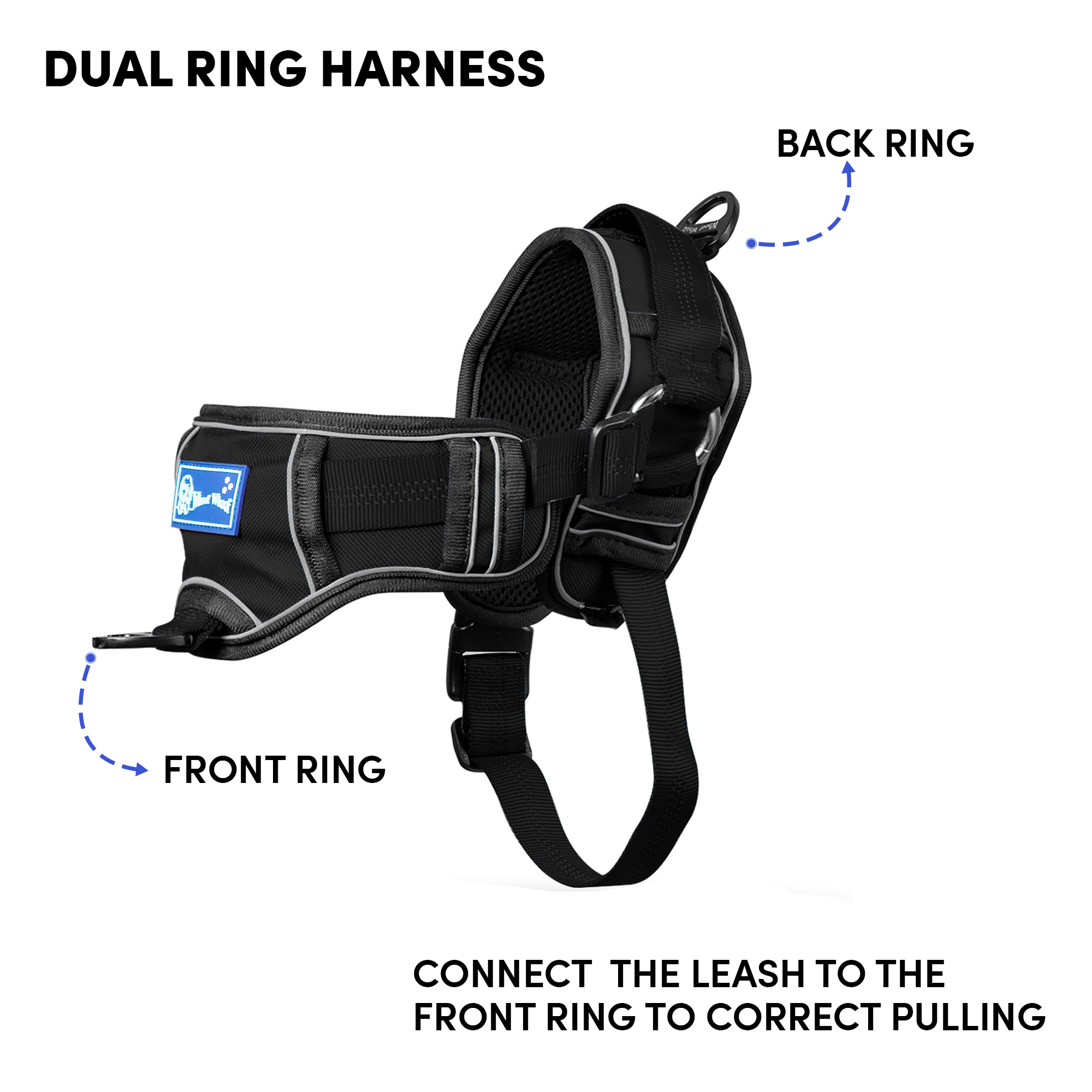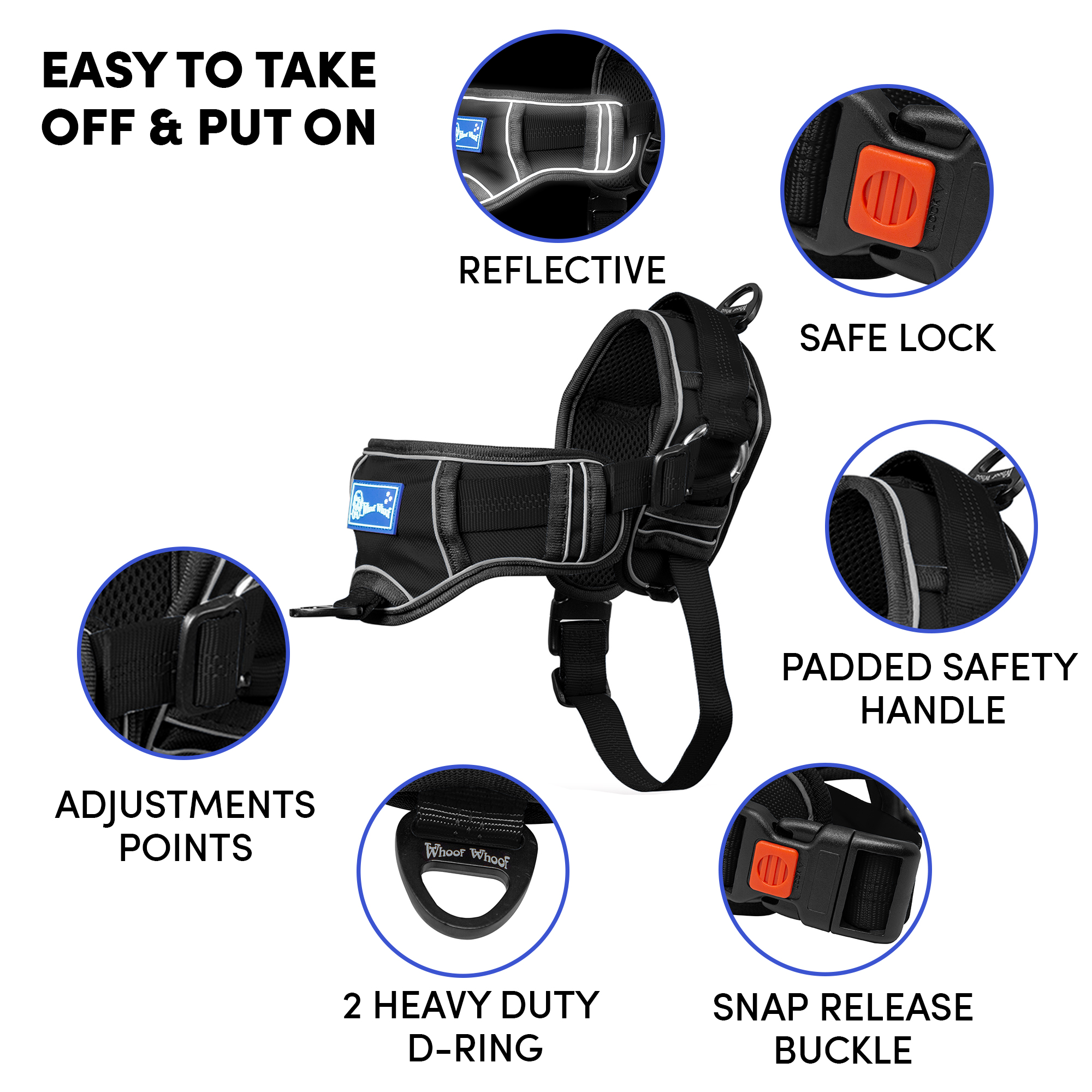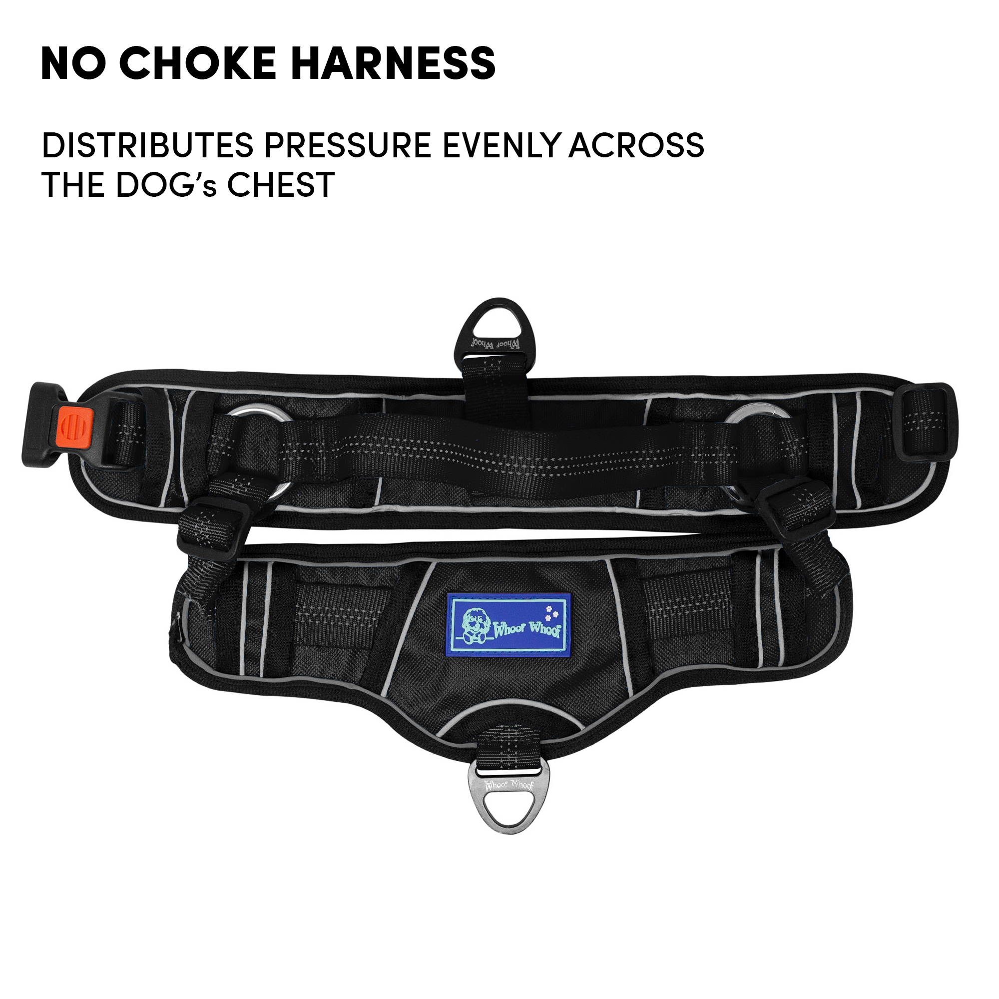 Barkbutler x Whoof Whoof Chocker Fully Padded Harness is safety first harness. The harness has no choke design, spreading the pressure evenly throughout the chest rather than solely on the neck. Soft breathable foam cushioning provides much comfort and coat friendliness for the dog. Reflective threading provides better visibility. Safe locks keep the snap release buckle in place. Heavy duty metal D-ring promotes durability. Adjustable points ensure a snug and perfect fit. Padded safety handles provided much support and control.