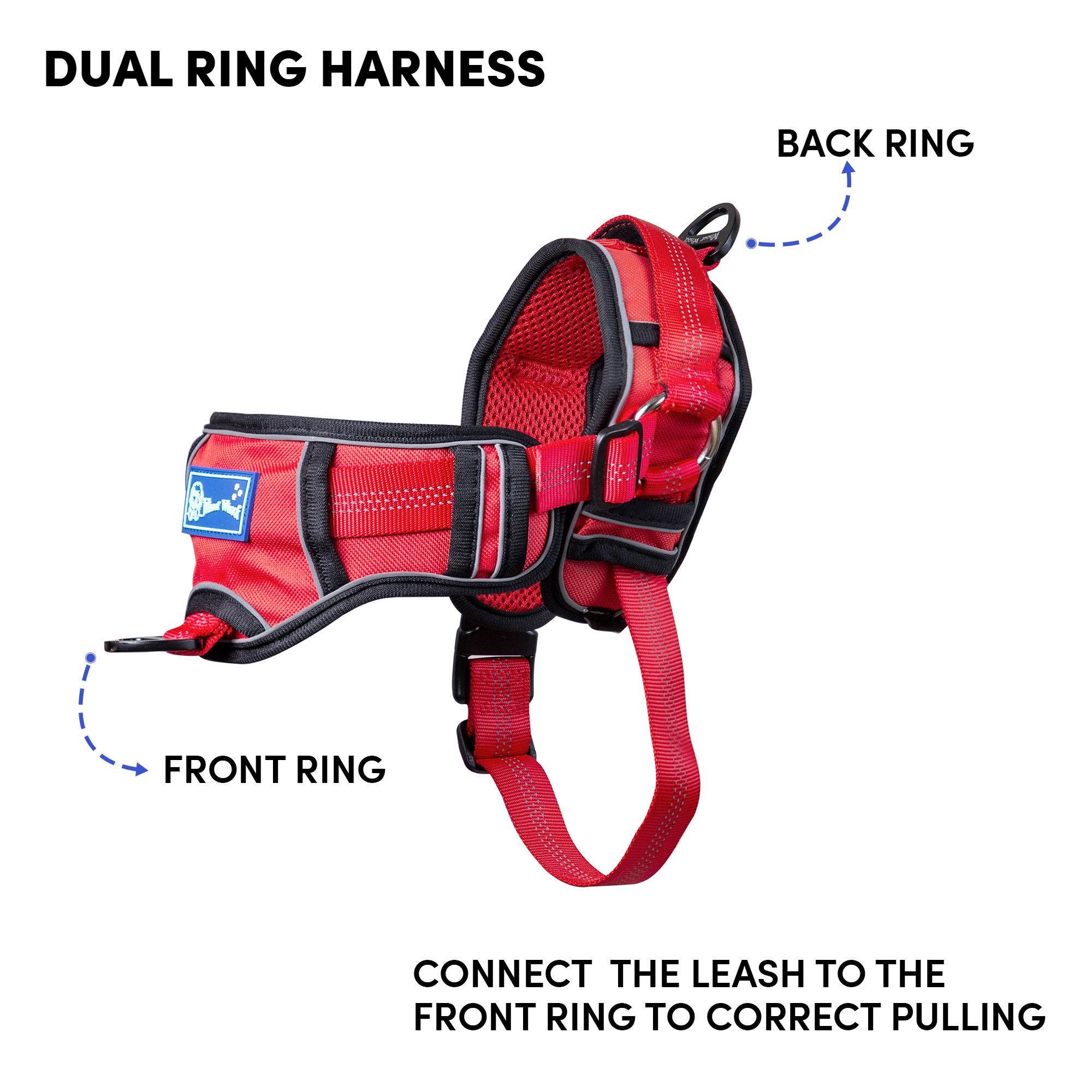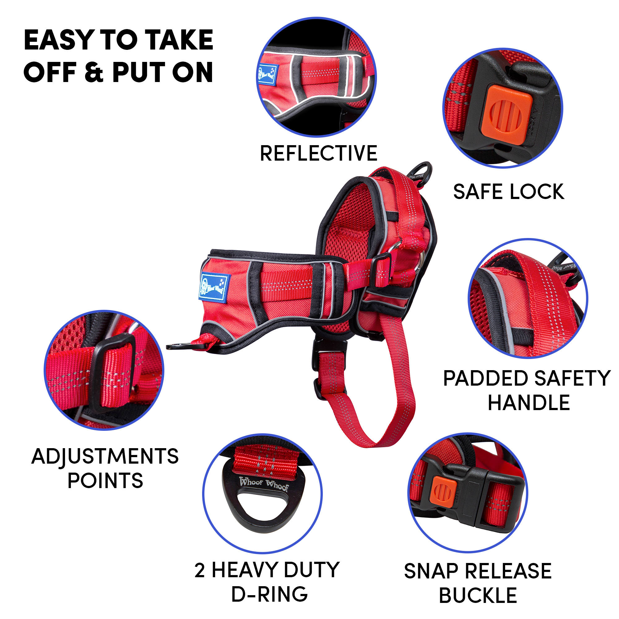 • Whoof Whoof CHOCKER FULLY PADDED HARNESS – XL Red