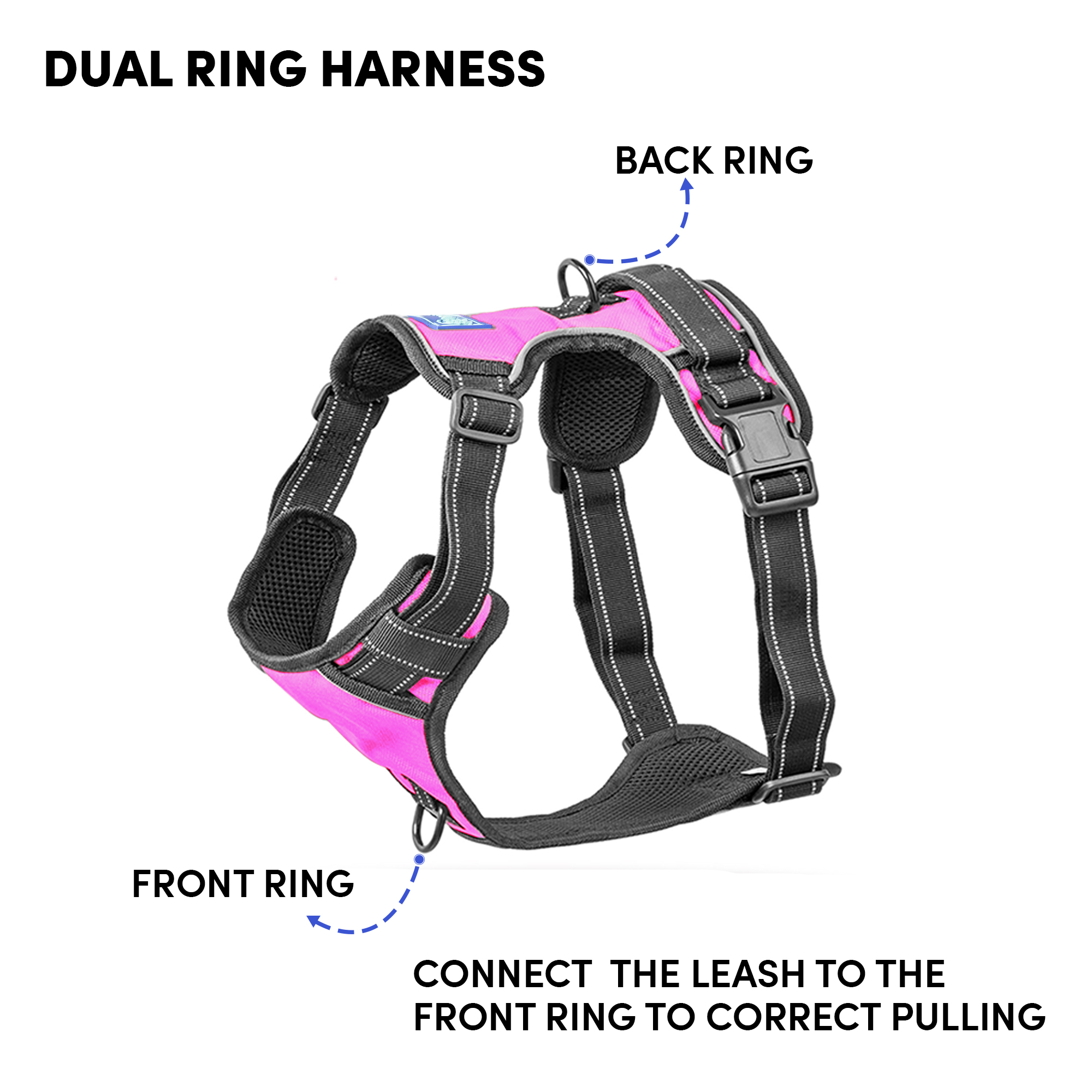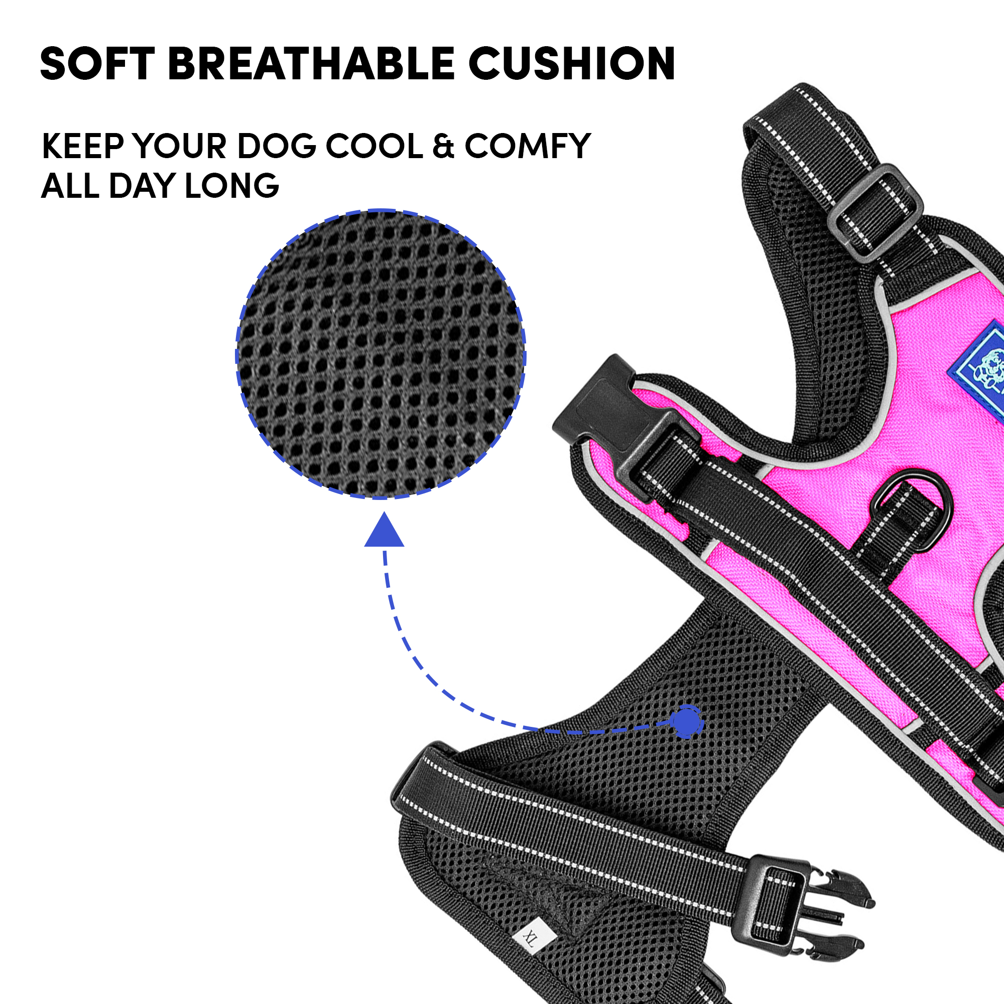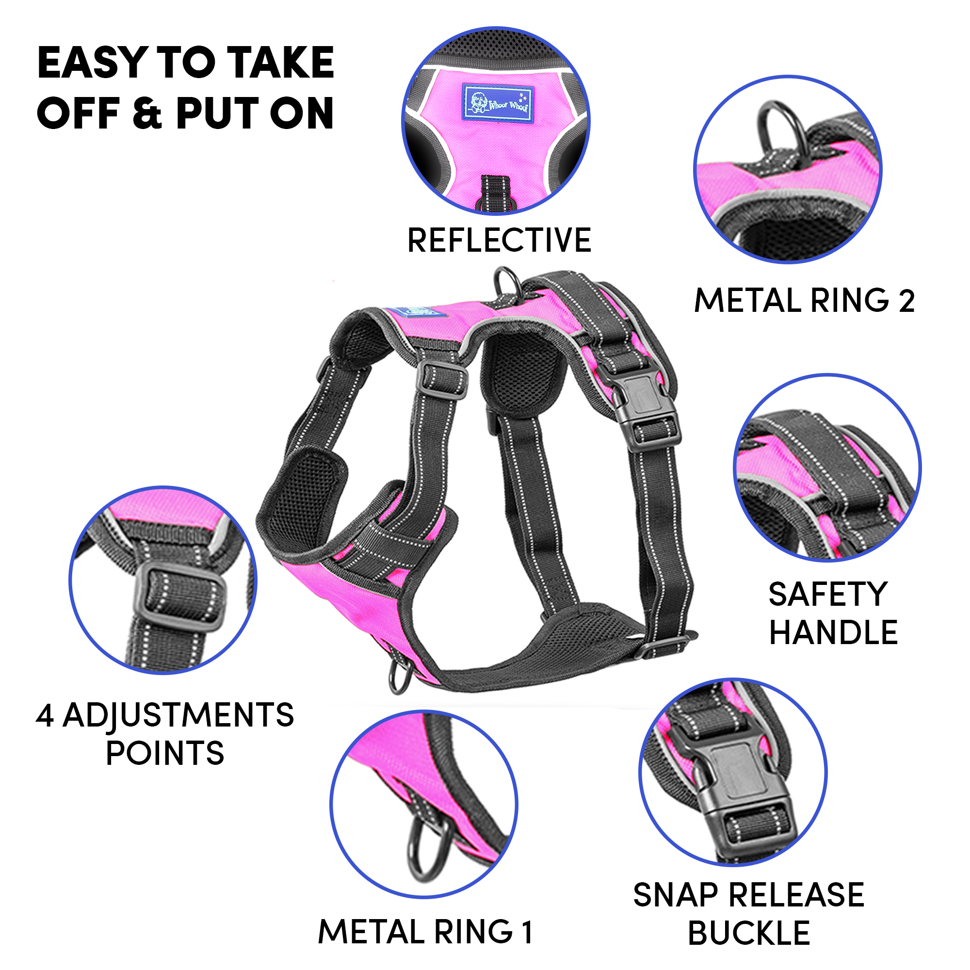 Whoof Whoof DOUBLE PADDED HARNESS – L Pink