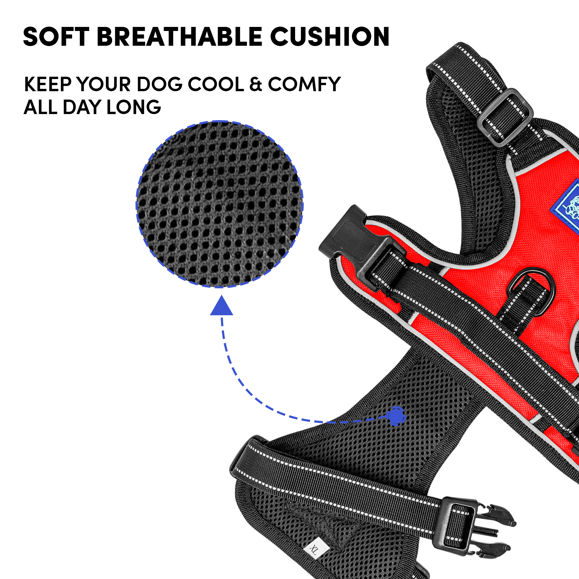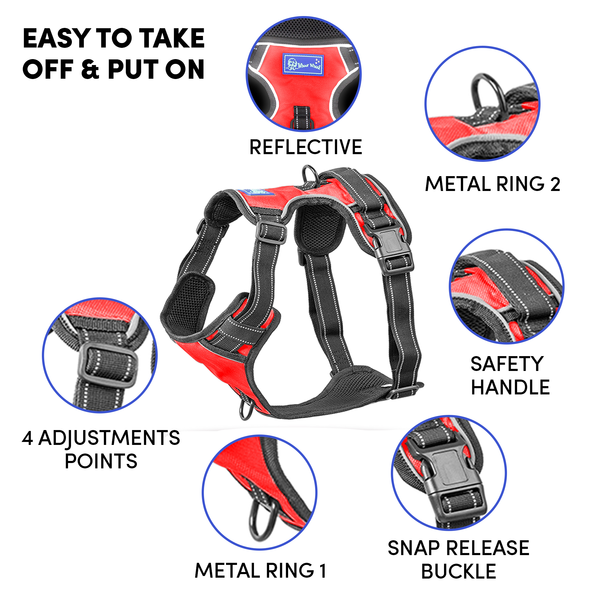 Whoof Whoof DOUBLE PADDED HARNESS – S Red