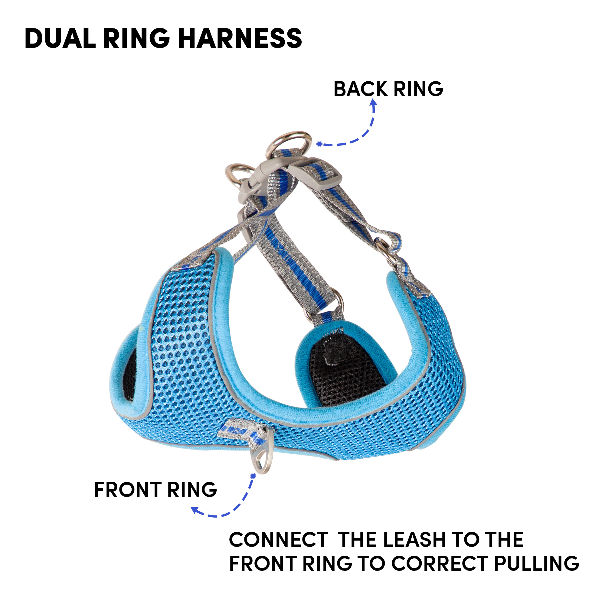 • Whoof Whoof MEASH HARNESS +LEASH – 4XL/XL Blue