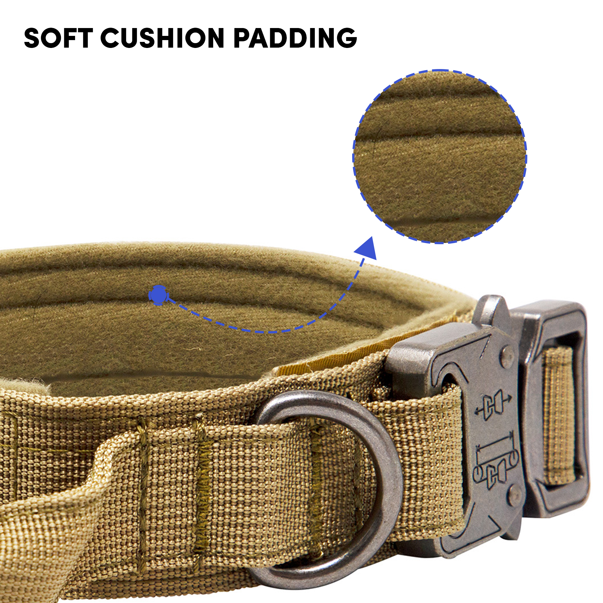 Barkbutler x Whoof Whoof Tactical Collar is a fully padded military collar. Soft breathable cushioning provides much comfort and coat friendliness for the dog. Safe locks keep the snap release buckle in place. Heavy duty D- rings promote durability. Adjustable points ensure a snug and perfect fit. Dedicated Hook and Loop Panel for badges. 1000D Reinforced Nylon Fabric ensures no breakage or degradation after long time use and tug.