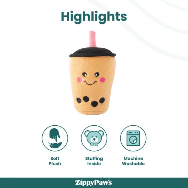 ZippyPaws NomNomz Boba Milk Tea pet toy— bubble up the fun with a toy that’s plush, squeaky, and brewed to perfection for your pup!
