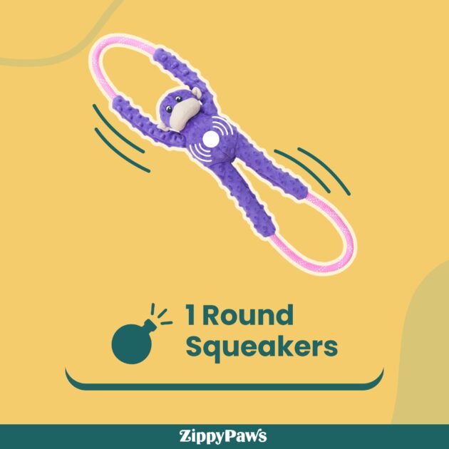 Bring on the tug-of-war with ZippyPaws RopeTugz — the super-sized monkey toy for dog tug-of-war that’s ready to swing into action! Designed for small to large dogs (5–30 kgs), these dog playing toys combine the cuddly charm of a stuffed animal with the tough, chew-friendly strength of climbing rope, making it the ultimate toy for pups who love to pull, play, and pounce.