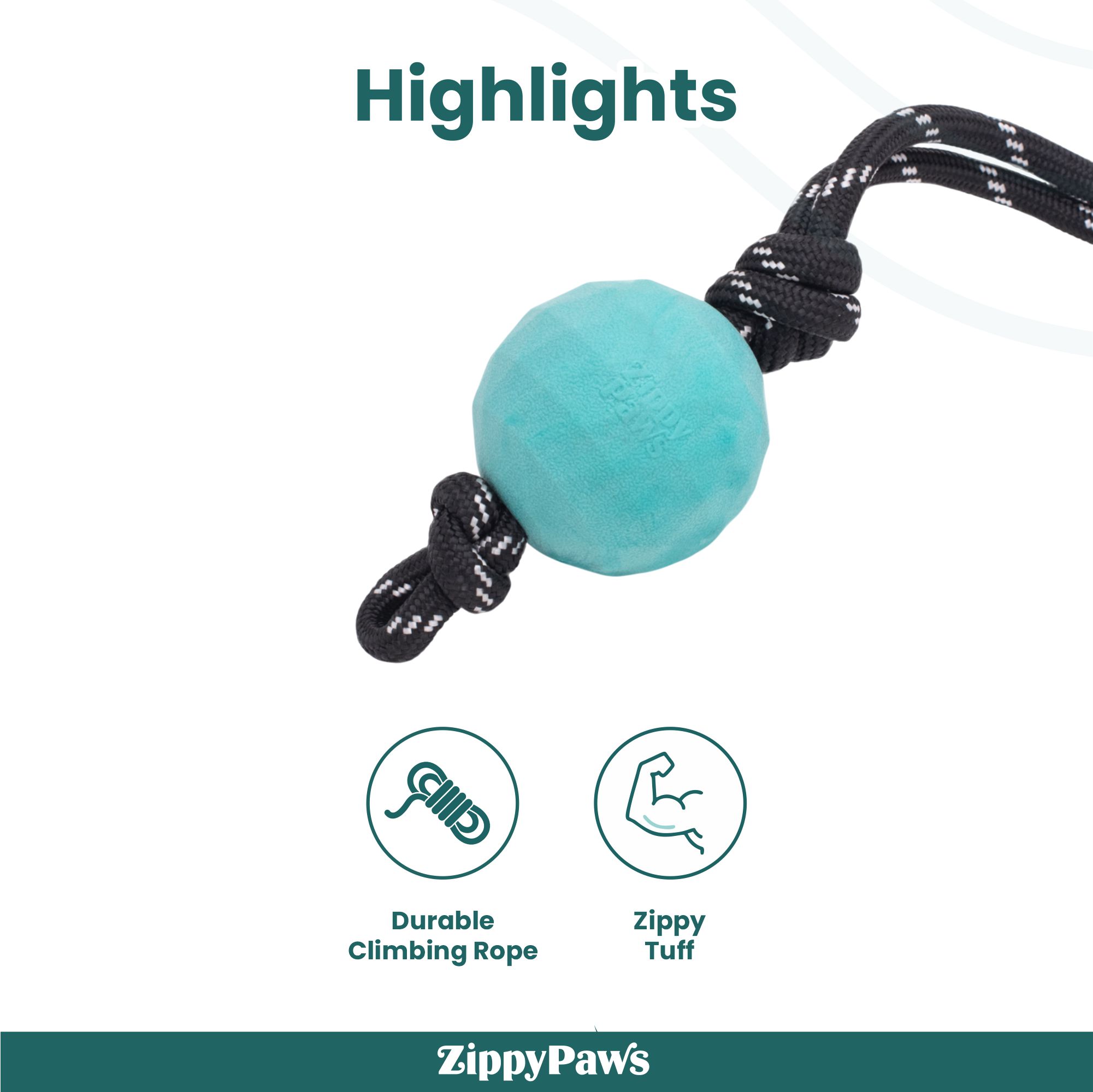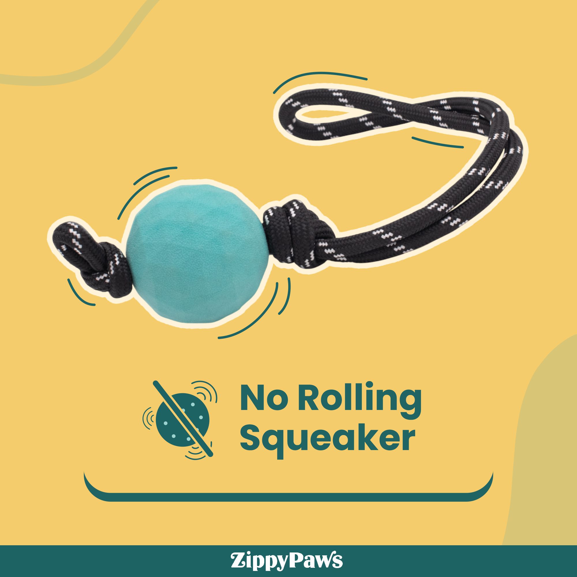 ZippyPaws ZippyTuff Waggle RopeTugz — tough rope, bouncy ball, and zero squeaks. It’s all play, all day.